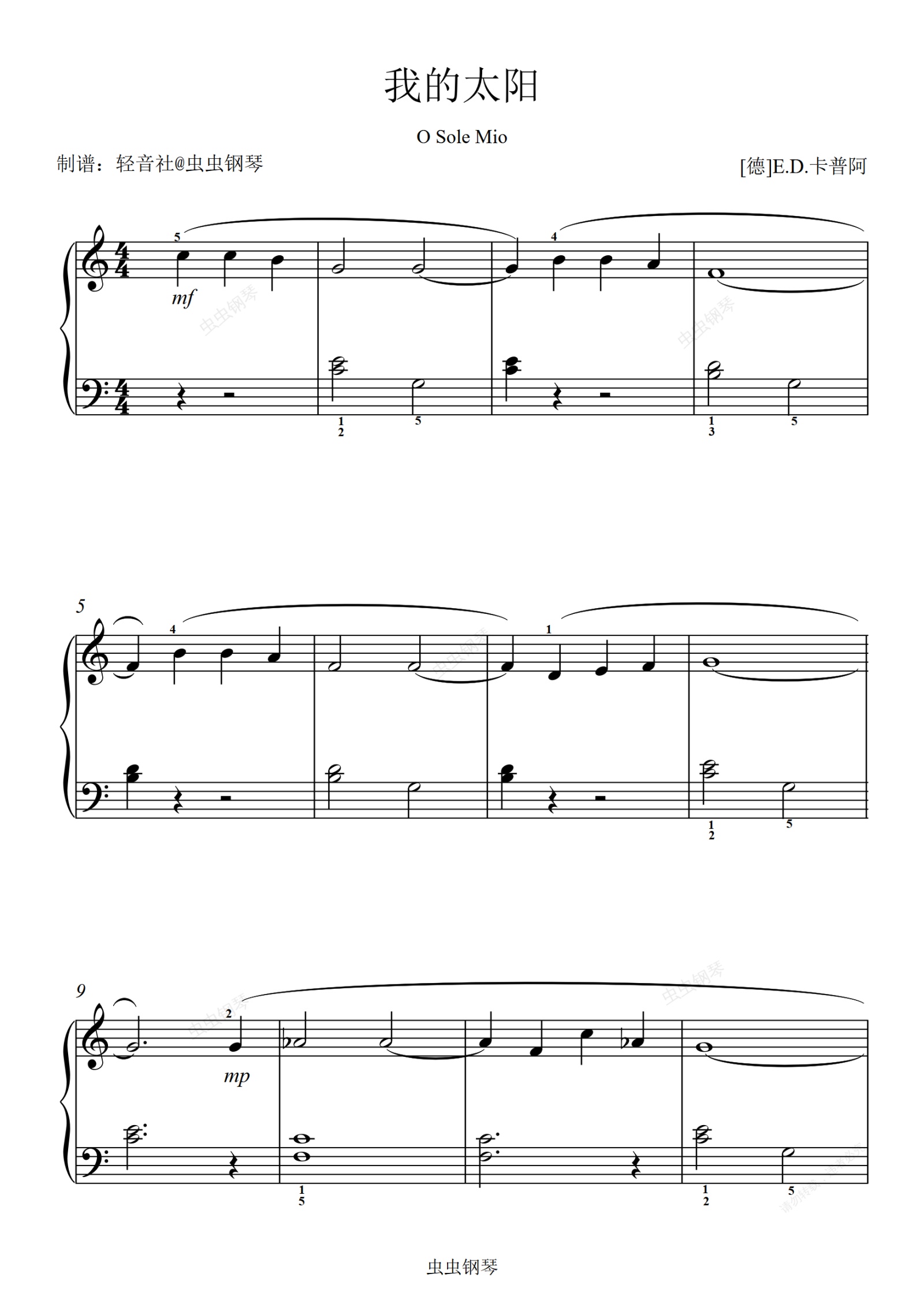 钢琴谱:《我的太阳》简单好弹好听经典儿童初学