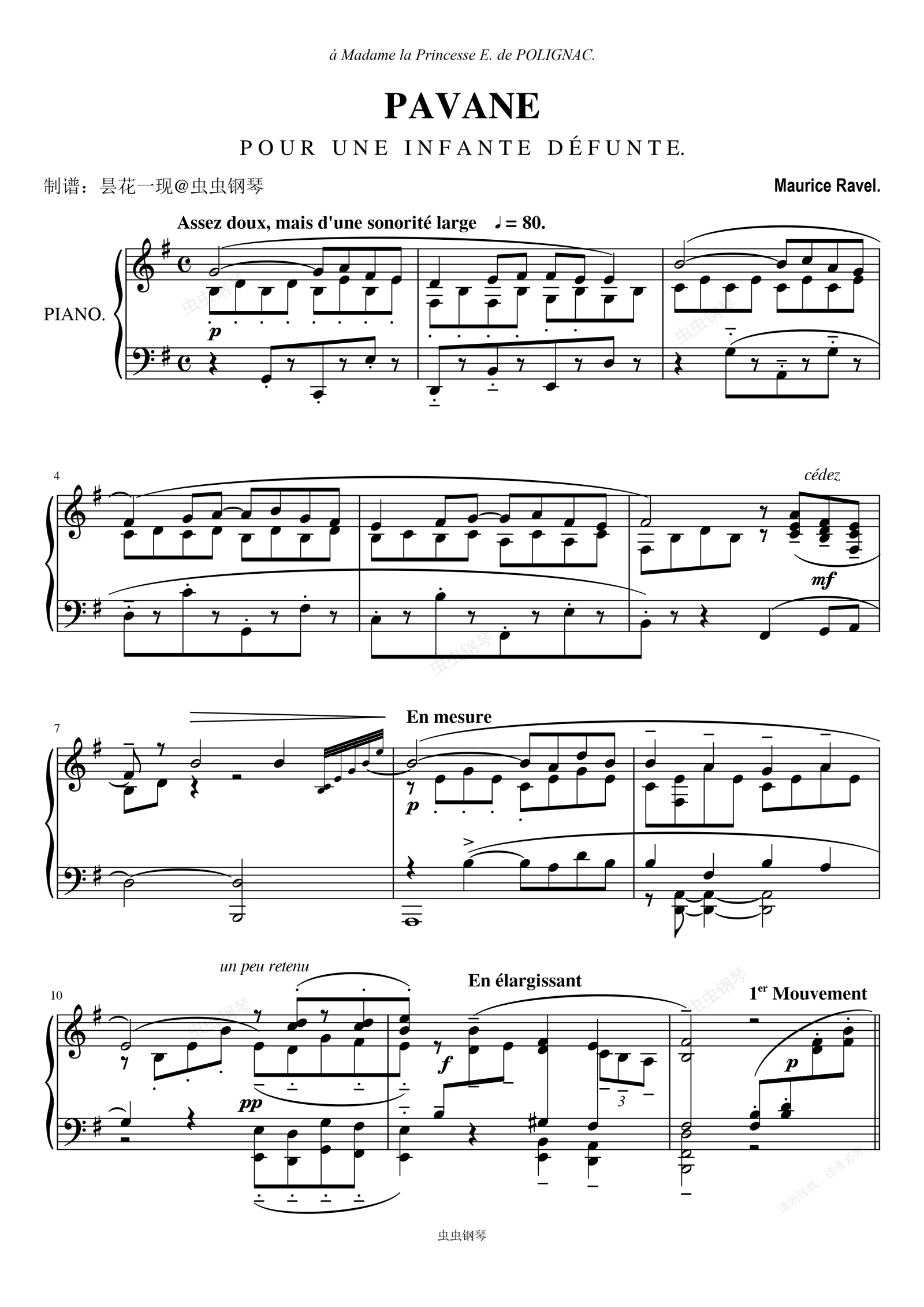 钢琴谱:悼念公主的帕凡舞曲 拉威尔