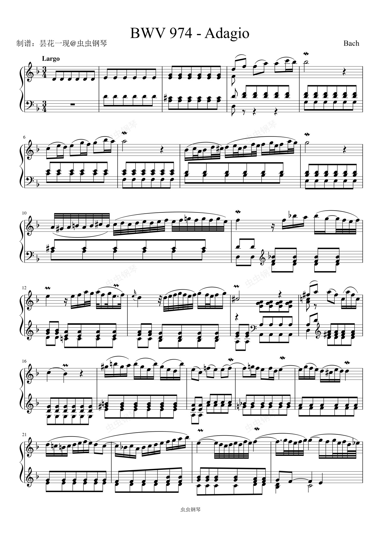 钢琴谱:BWV974、D小调协奏曲第二乐章