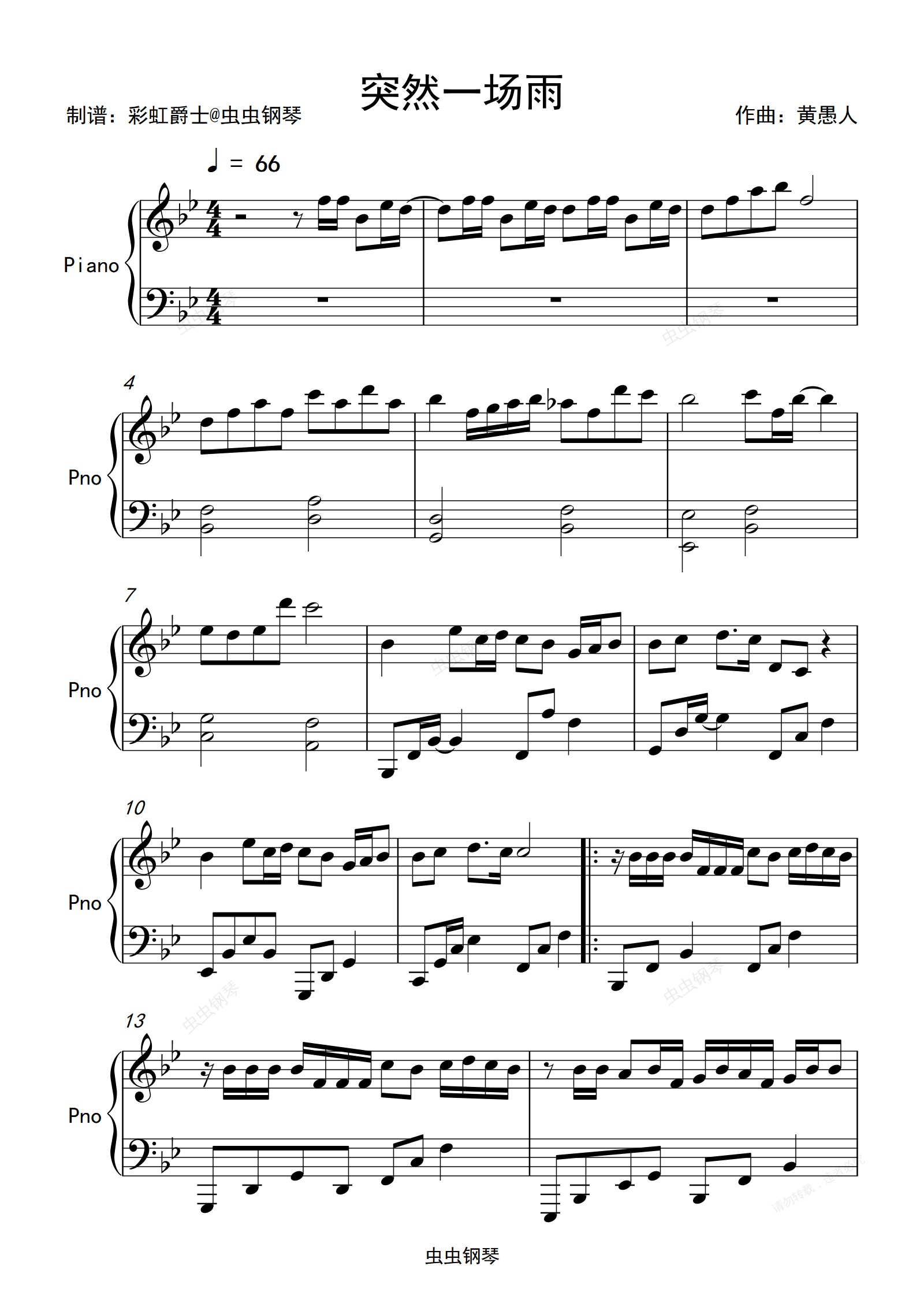 钢琴谱:突然一场雨-抖音 蓝心羽