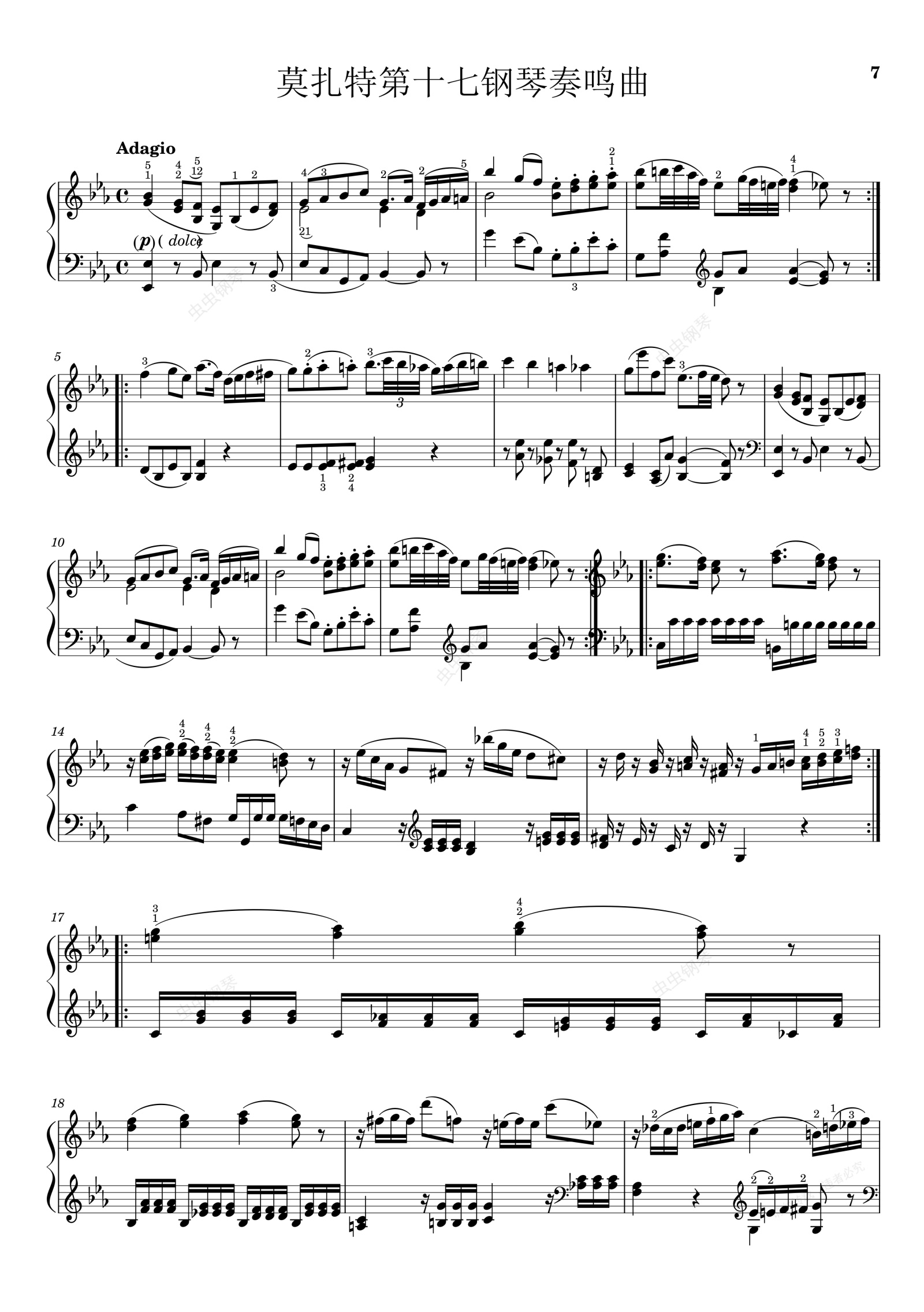 钢琴谱:莫扎特第十七钢琴奏鸣曲 Sonata No. 17, 2nd Movement K. 570
