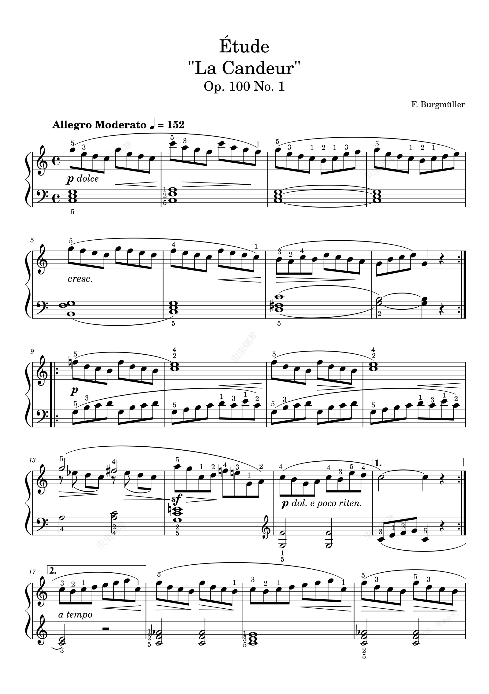 钢琴谱:布格缪勒-坦诉Étude Op. 100 No. 1 La Candeur