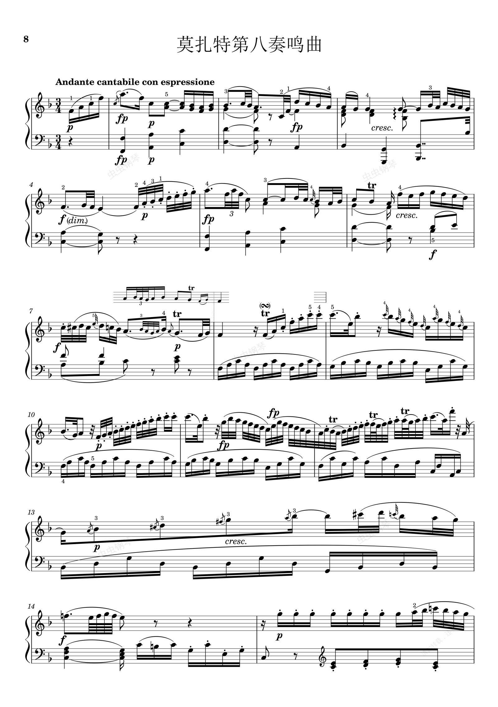 钢琴谱:莫扎特第八奏鸣曲 Sonata No. 8, 2nd Movement K. 310