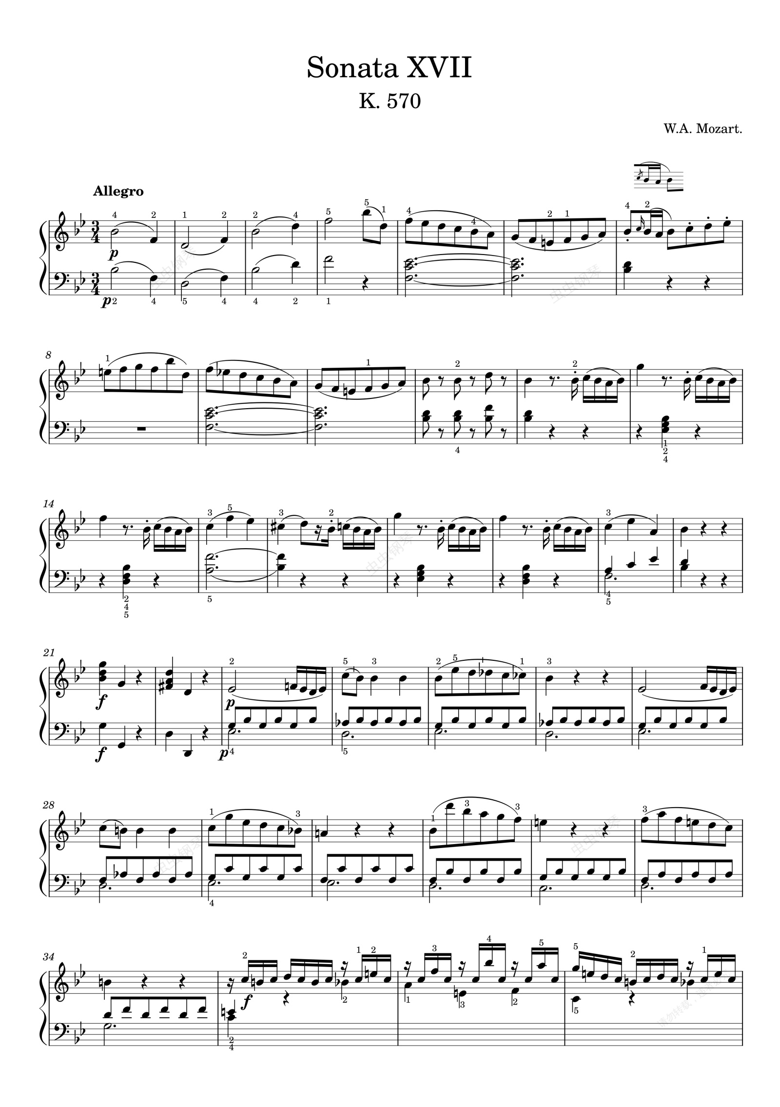 钢琴谱:莫扎特第十七钢琴奏鸣曲 Sonata No. 17, 1st Movement K. 570