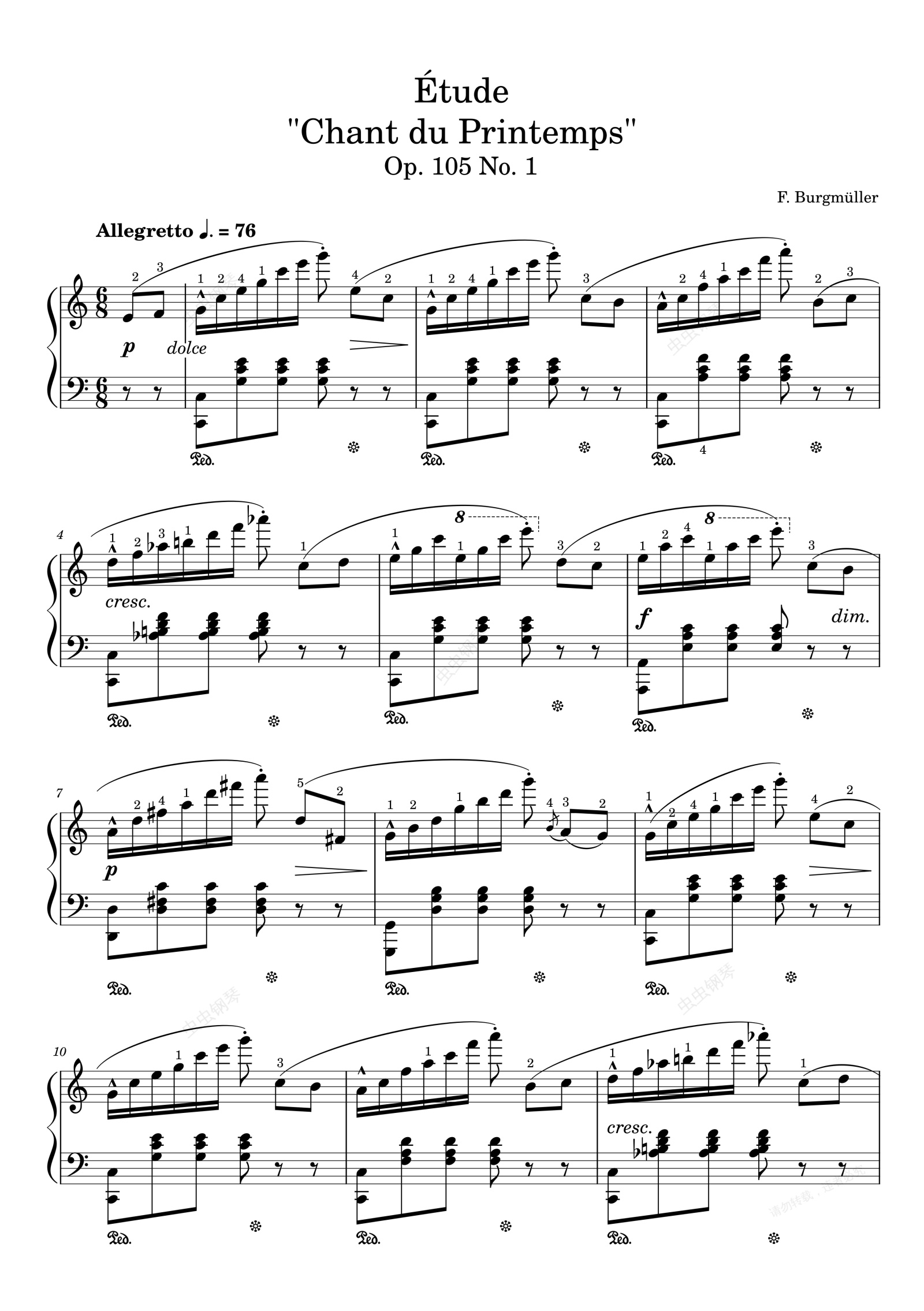 钢琴谱:肖邦练习曲 瀑布Étude Op. 105 No. 1 Chant du Printemps