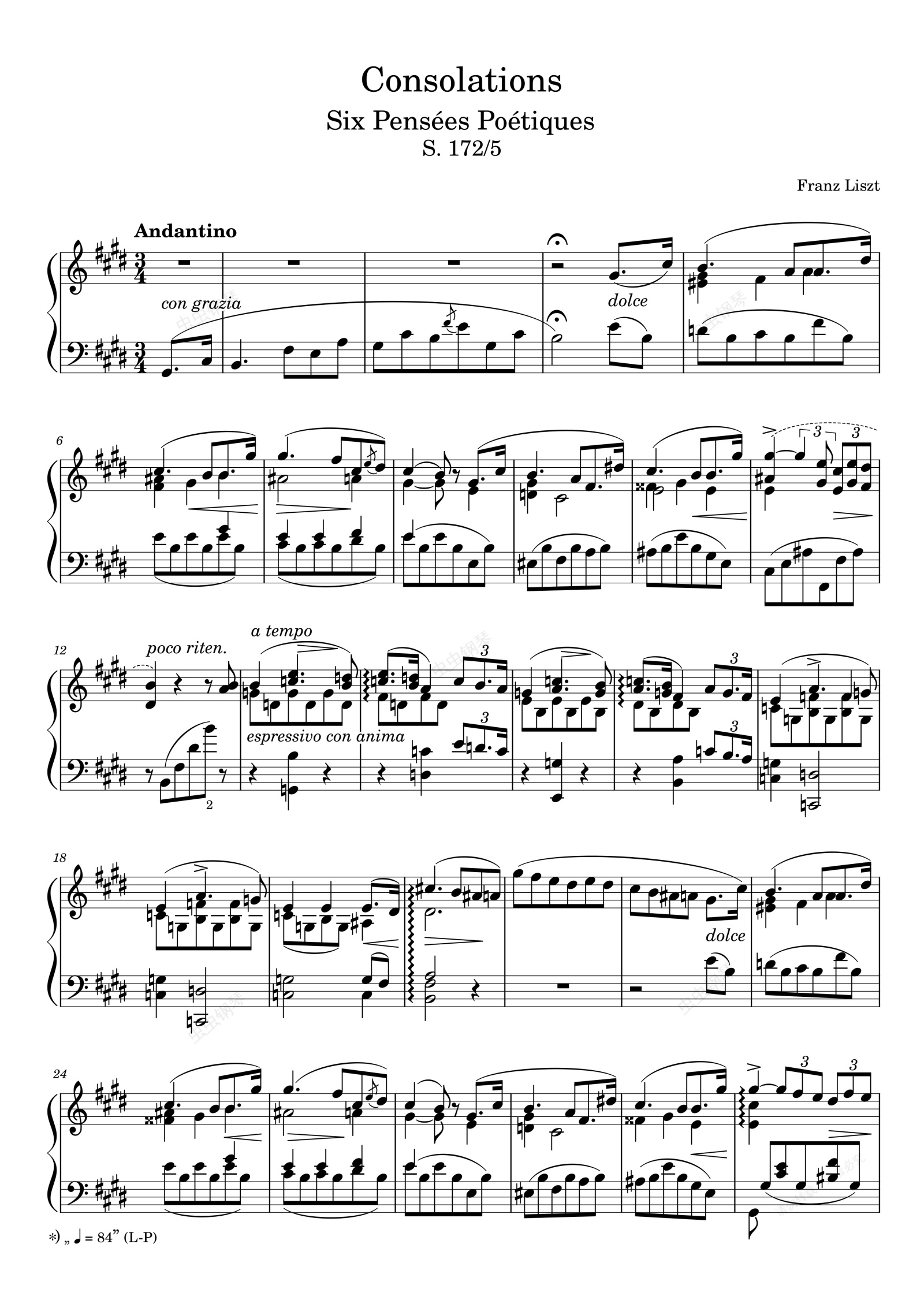 钢琴谱:李斯特第五号安慰曲Consolation No. 5