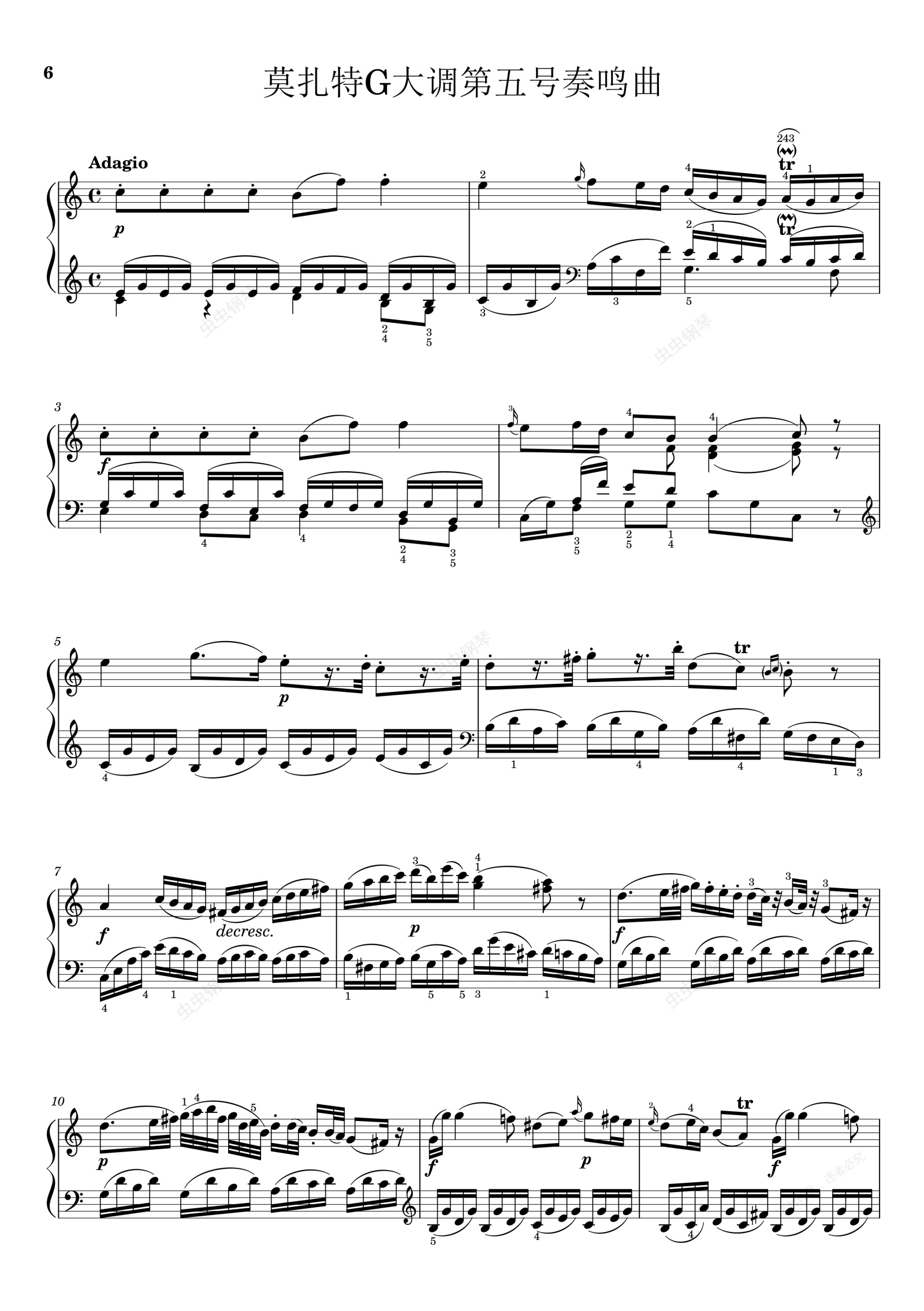 钢琴谱:莫扎特G大调第五号钢琴奏鸣曲K.283 第二乐章