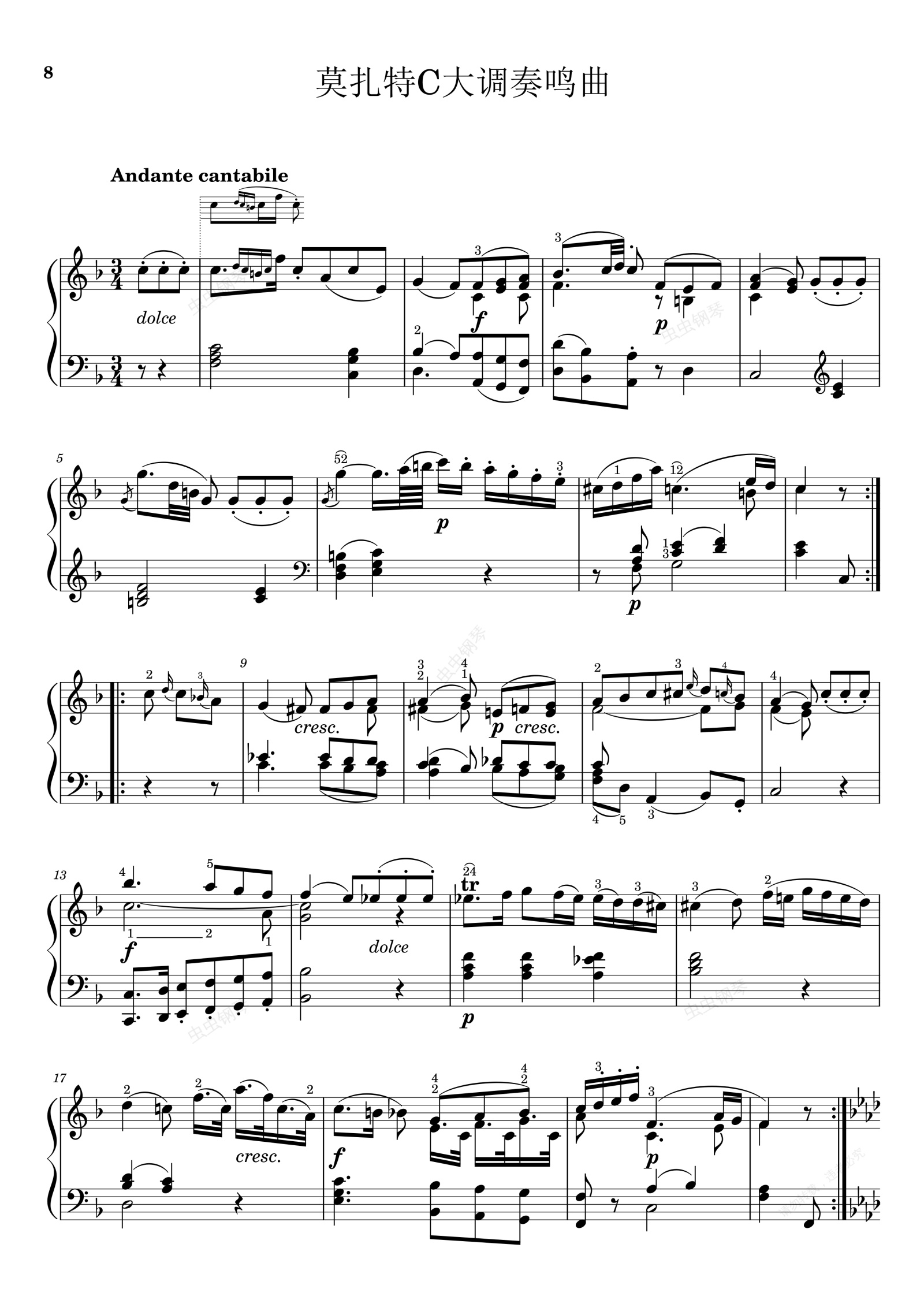 钢琴谱:莫扎特C大调奏鸣曲 第二乐章