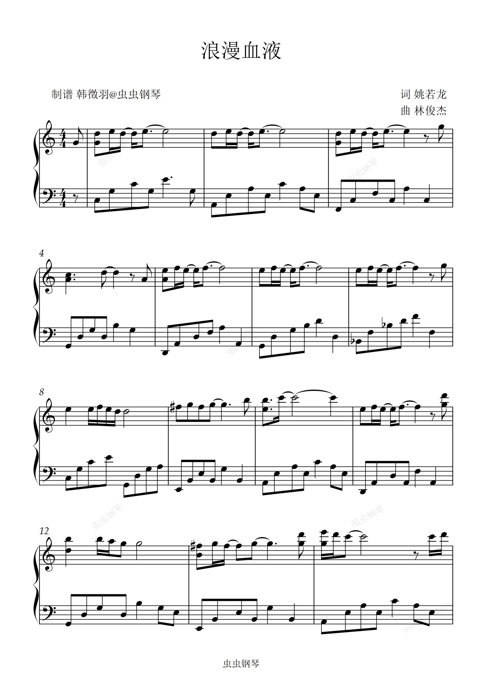 钢琴谱:浪漫血液 林俊杰 简单易弹