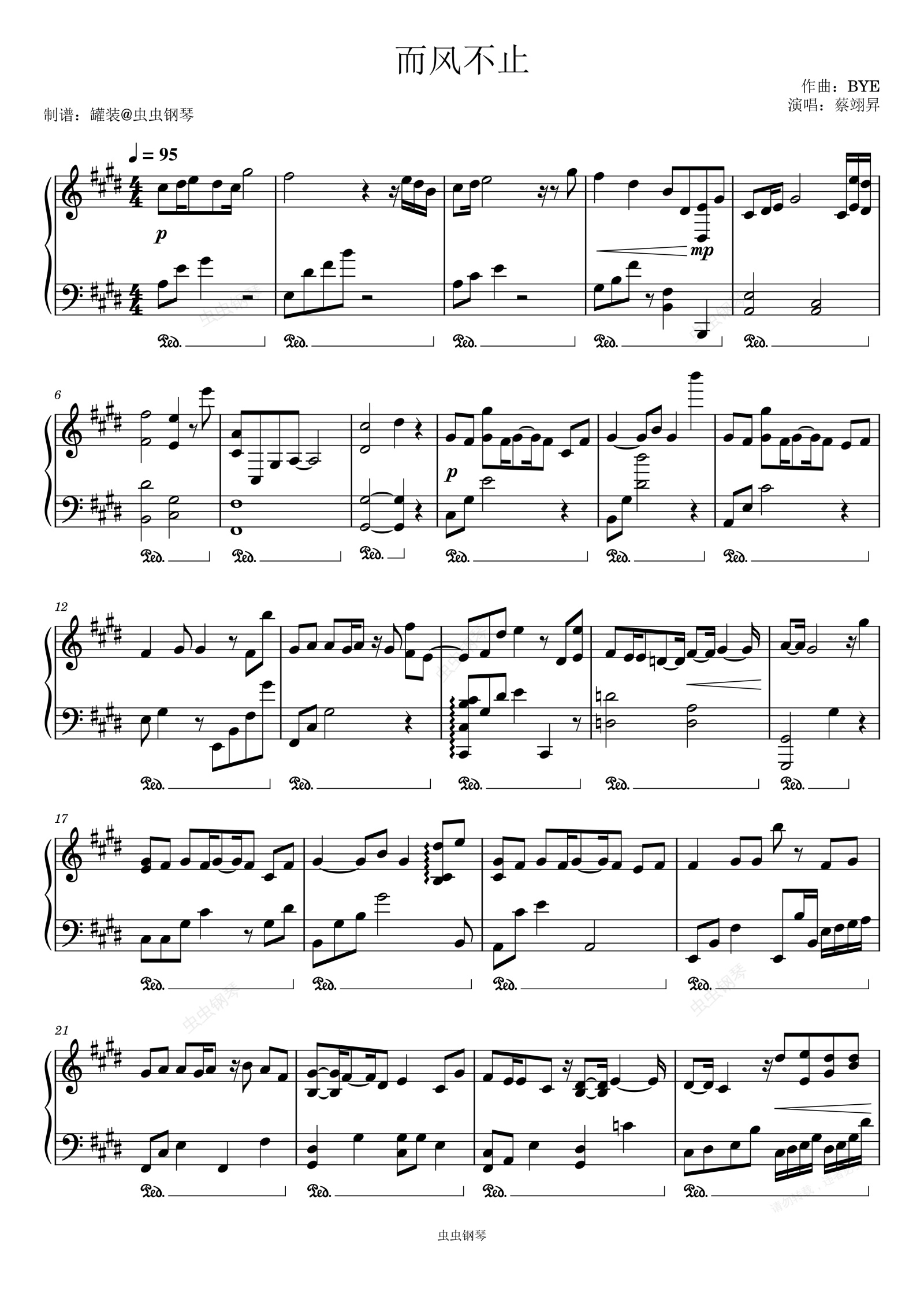 钢琴谱:而风不止