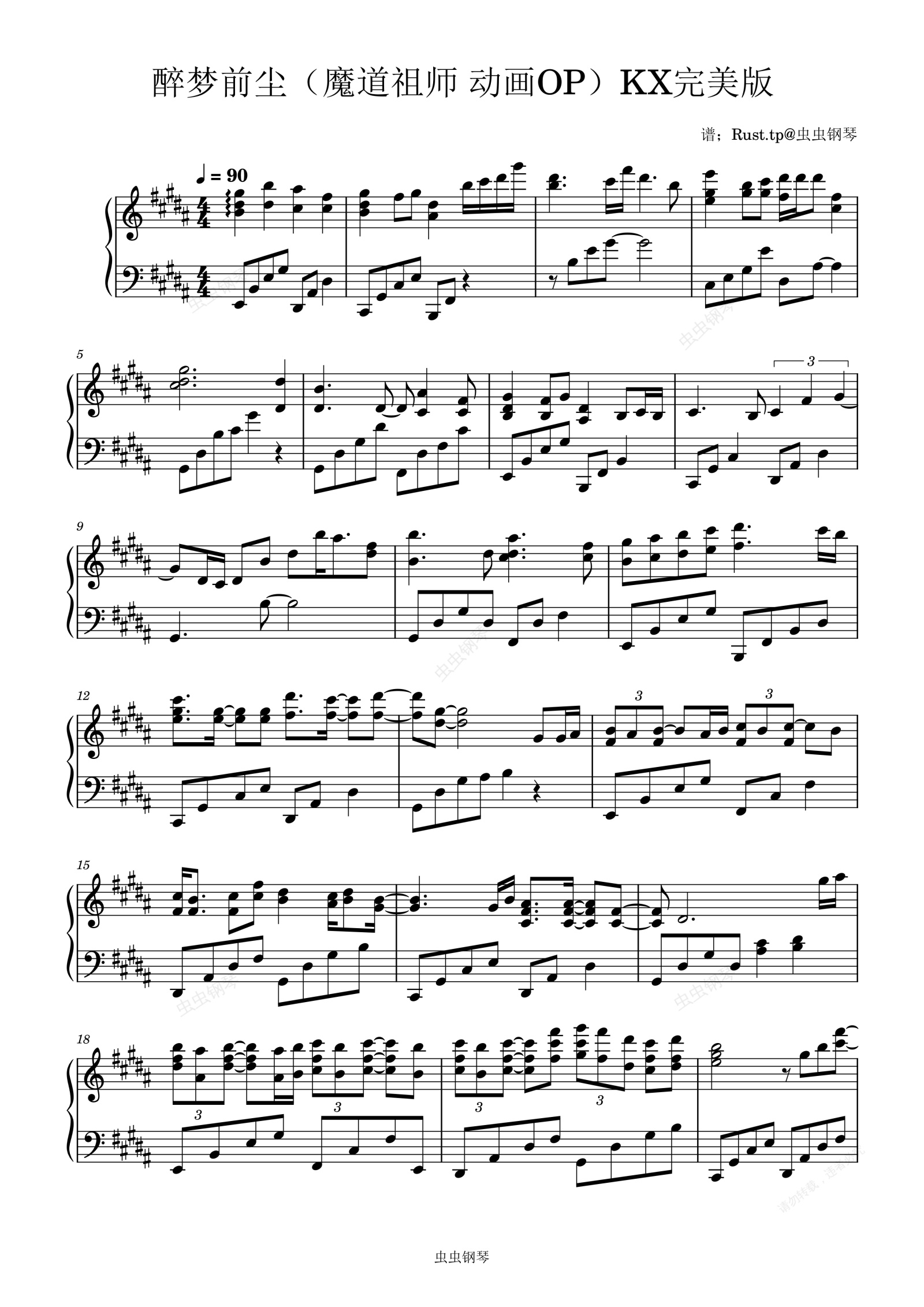 钢琴谱:醉梦前尘(魔道祖师 动画OP)KX完美版
