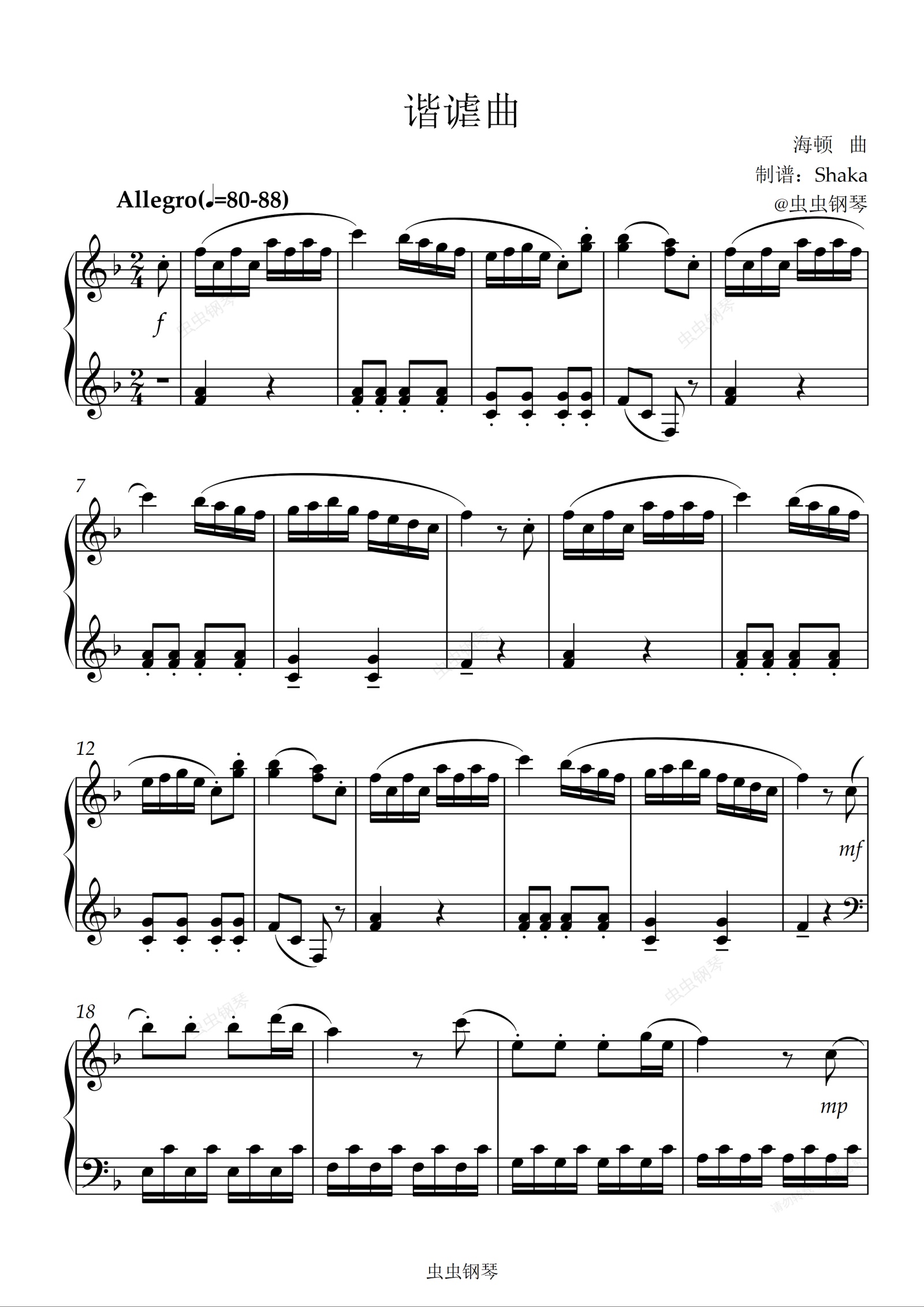 钢琴谱:谐谑曲 海顿 中国音乐学院2级A组考级曲目