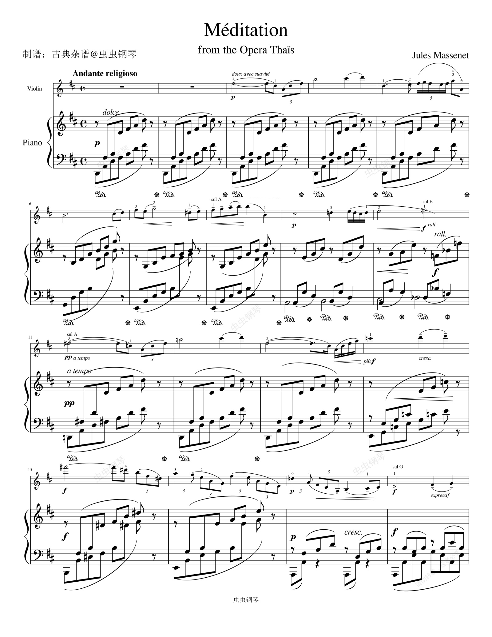 钢琴谱:沉思 马斯奈(小提琴+钢琴)
