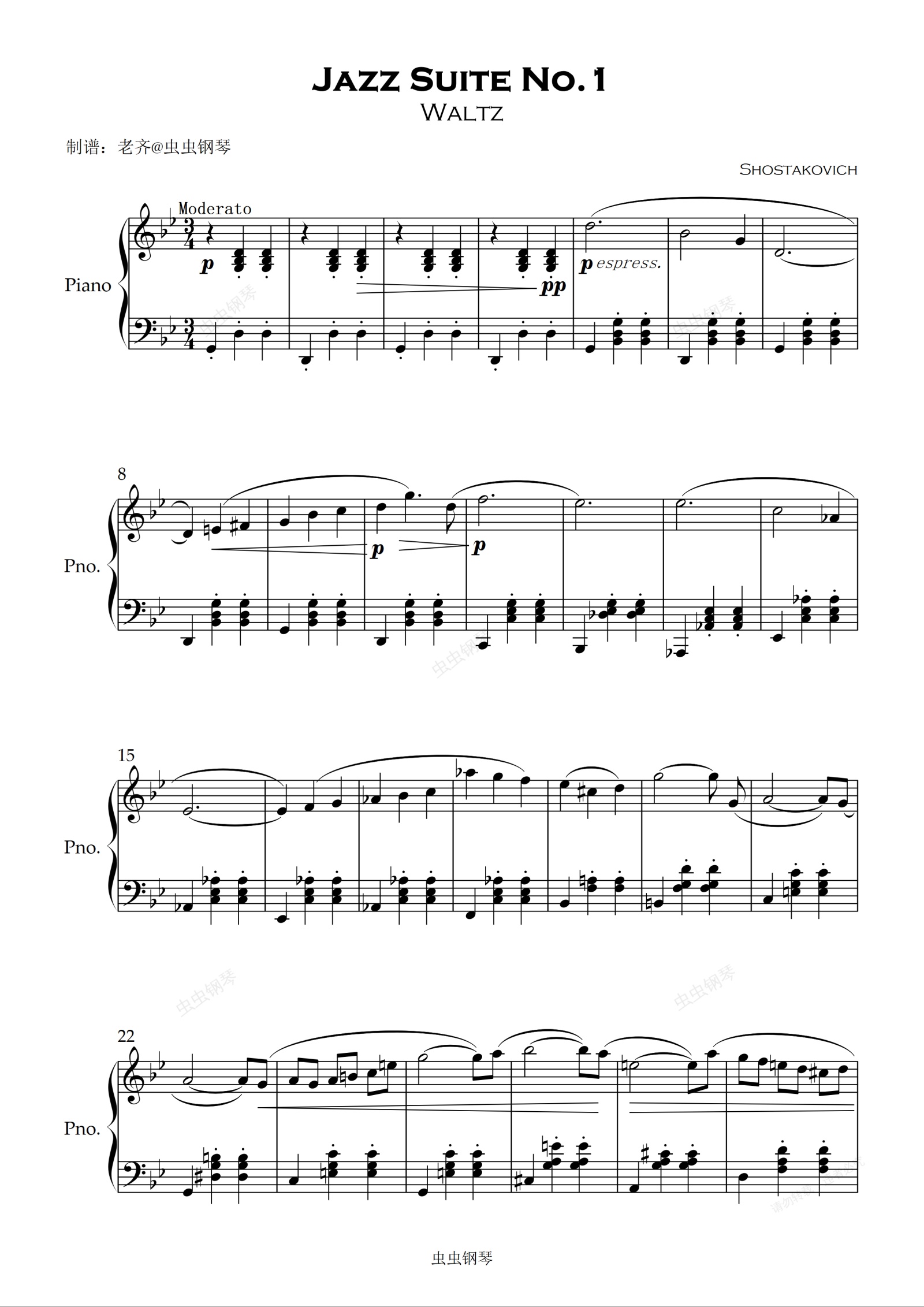 钢琴谱:爵士组曲第一号-圆舞曲