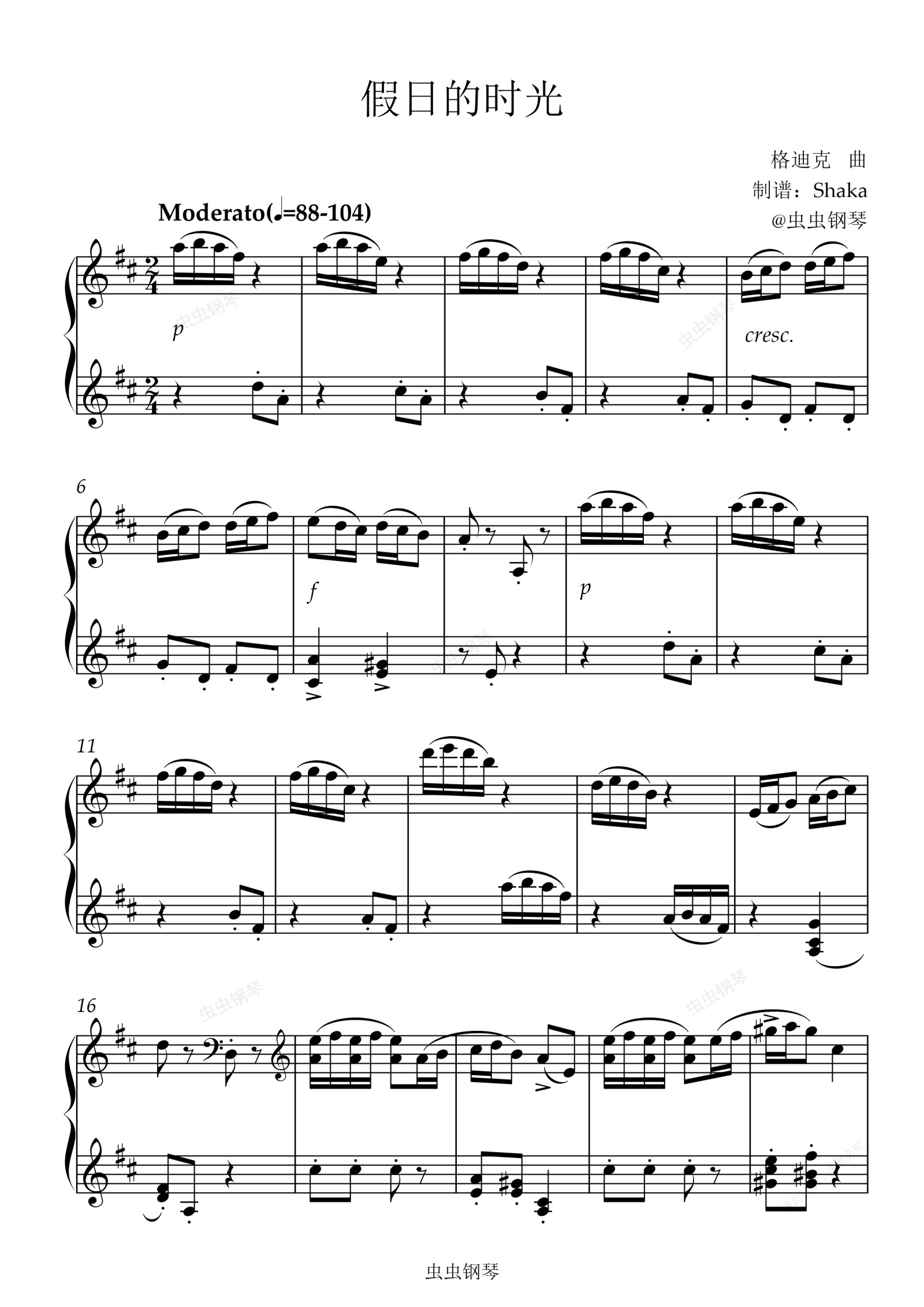钢琴谱:假日的时光 中国音乐学院3级考级曲目 D调版