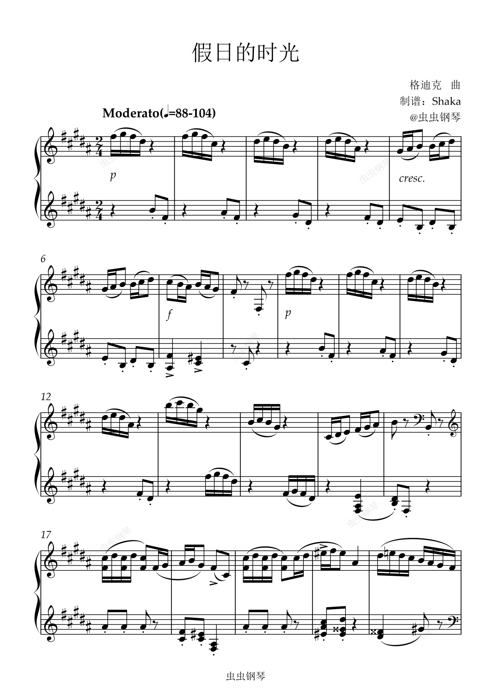 钢琴谱:假日的时光 B调版 中国音乐学院3级考级曲目