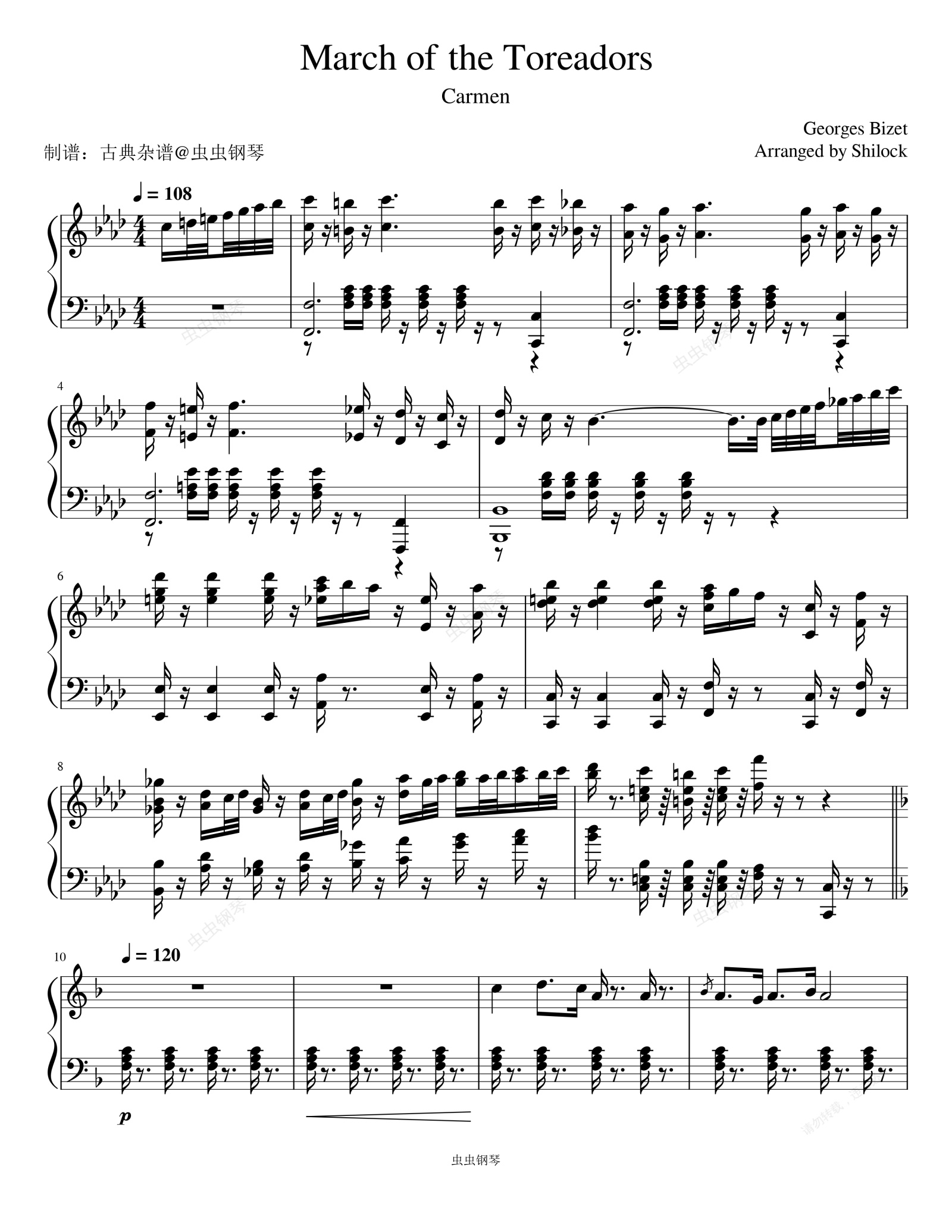 钢琴谱:斗牛士进行曲 比才