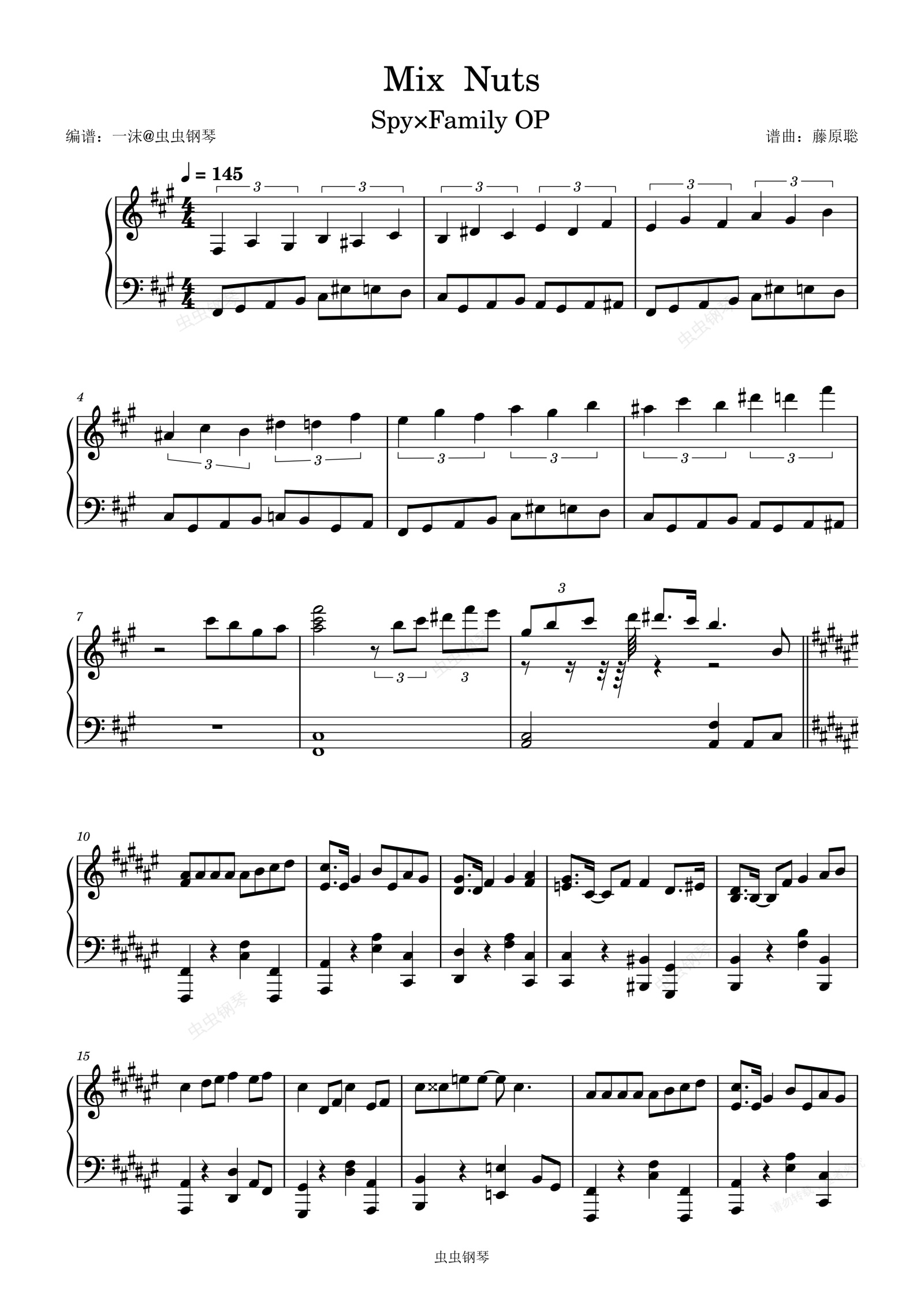 钢琴谱:间谍过家家OP Mix Nuts 完整版 钢琴独奏