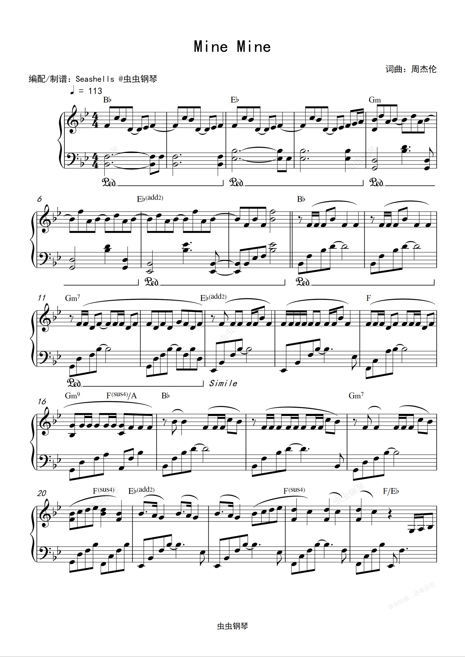 钢琴谱:周杰伦-《Mine Mine》精编钢琴独奏