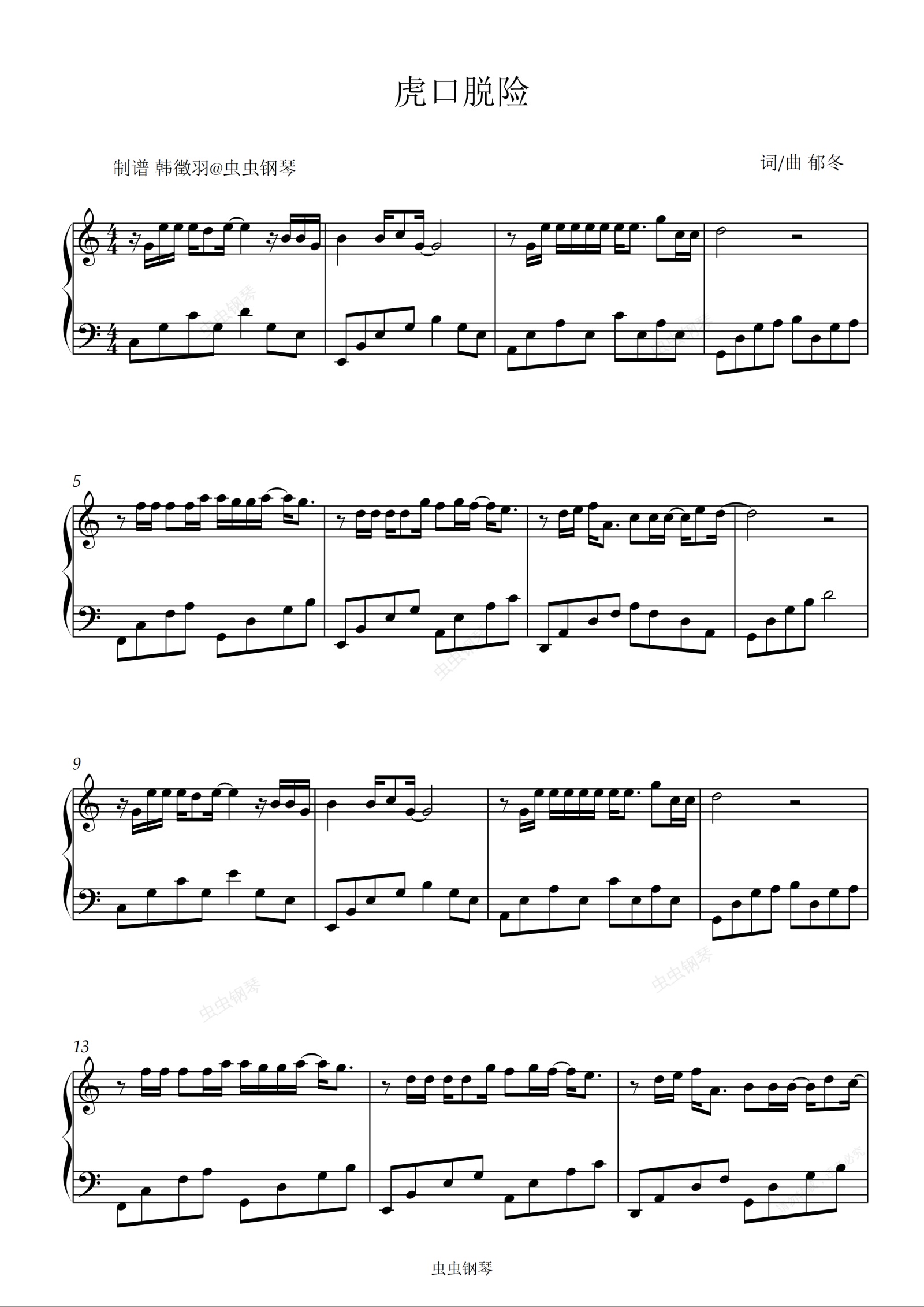 钢琴谱:虎口脱险 老狼 初学者简易版