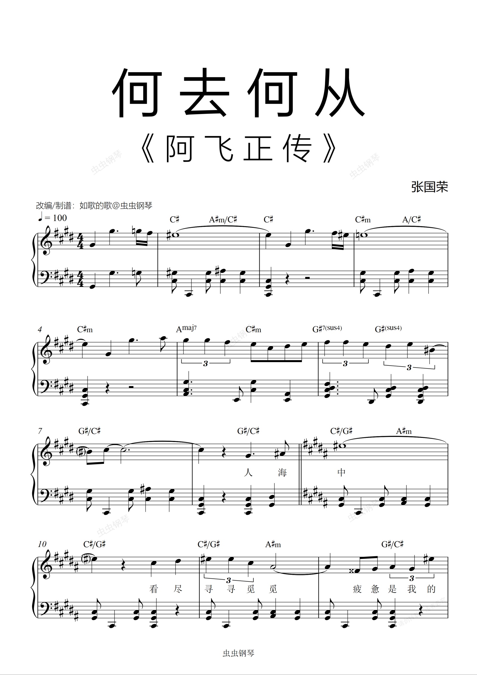 钢琴谱:何去何从/张国荣原调-电影阿飞正传ost