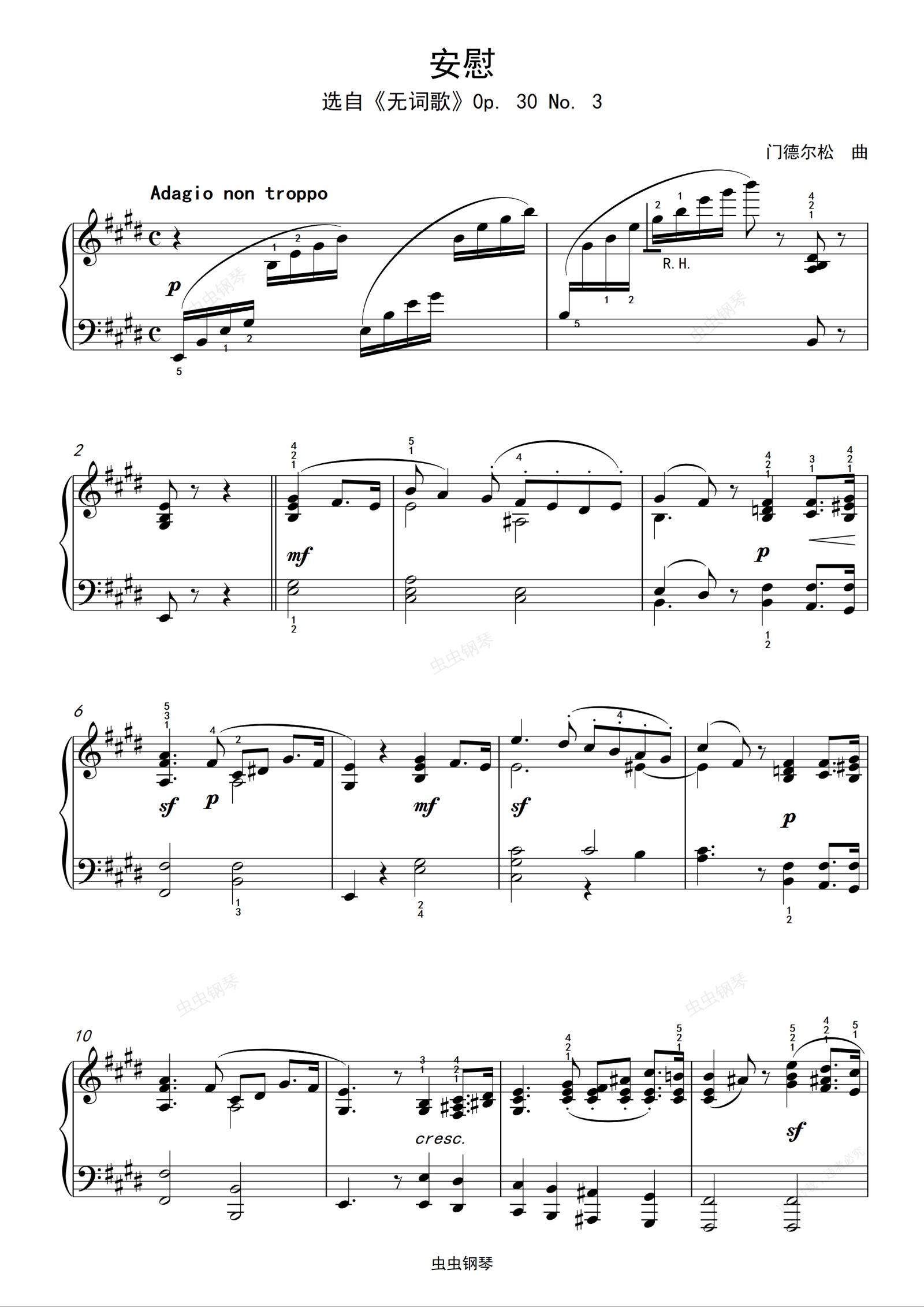 钢琴谱:6级-小型乐曲-安慰 (门德尔松)