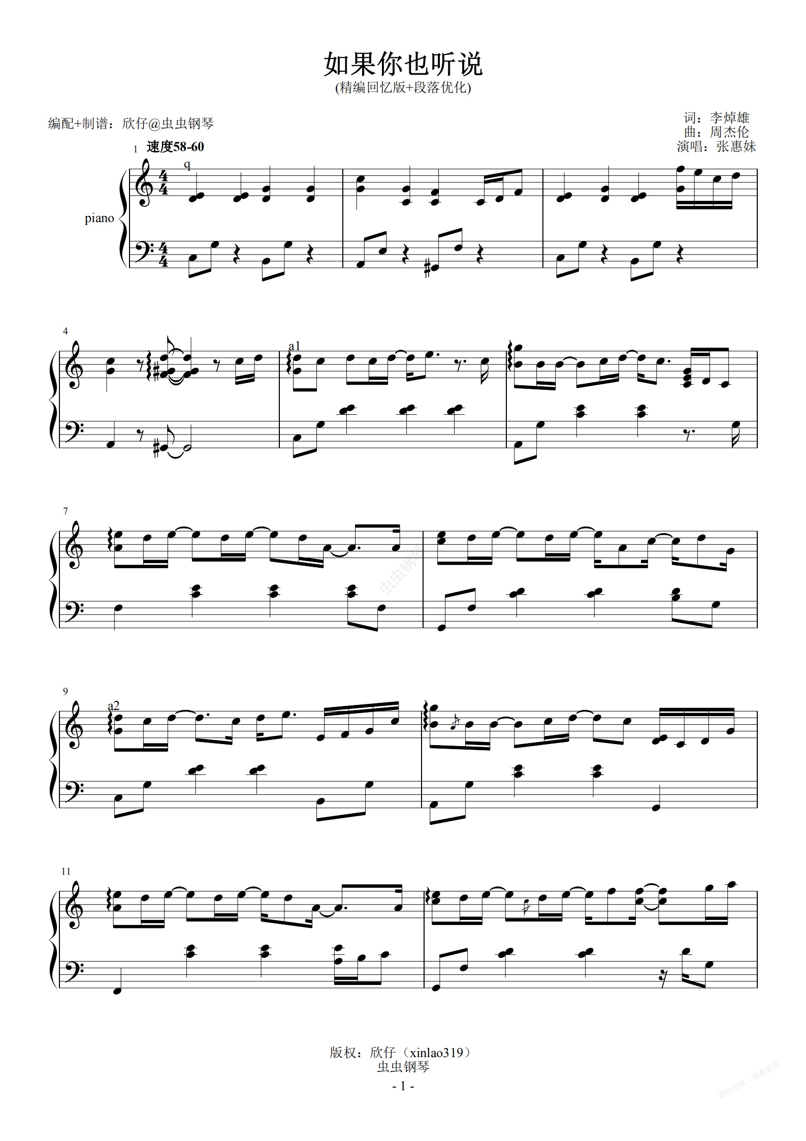 钢琴谱:张惠妹-C《如果你也听说》(精编回忆版+段落优化)