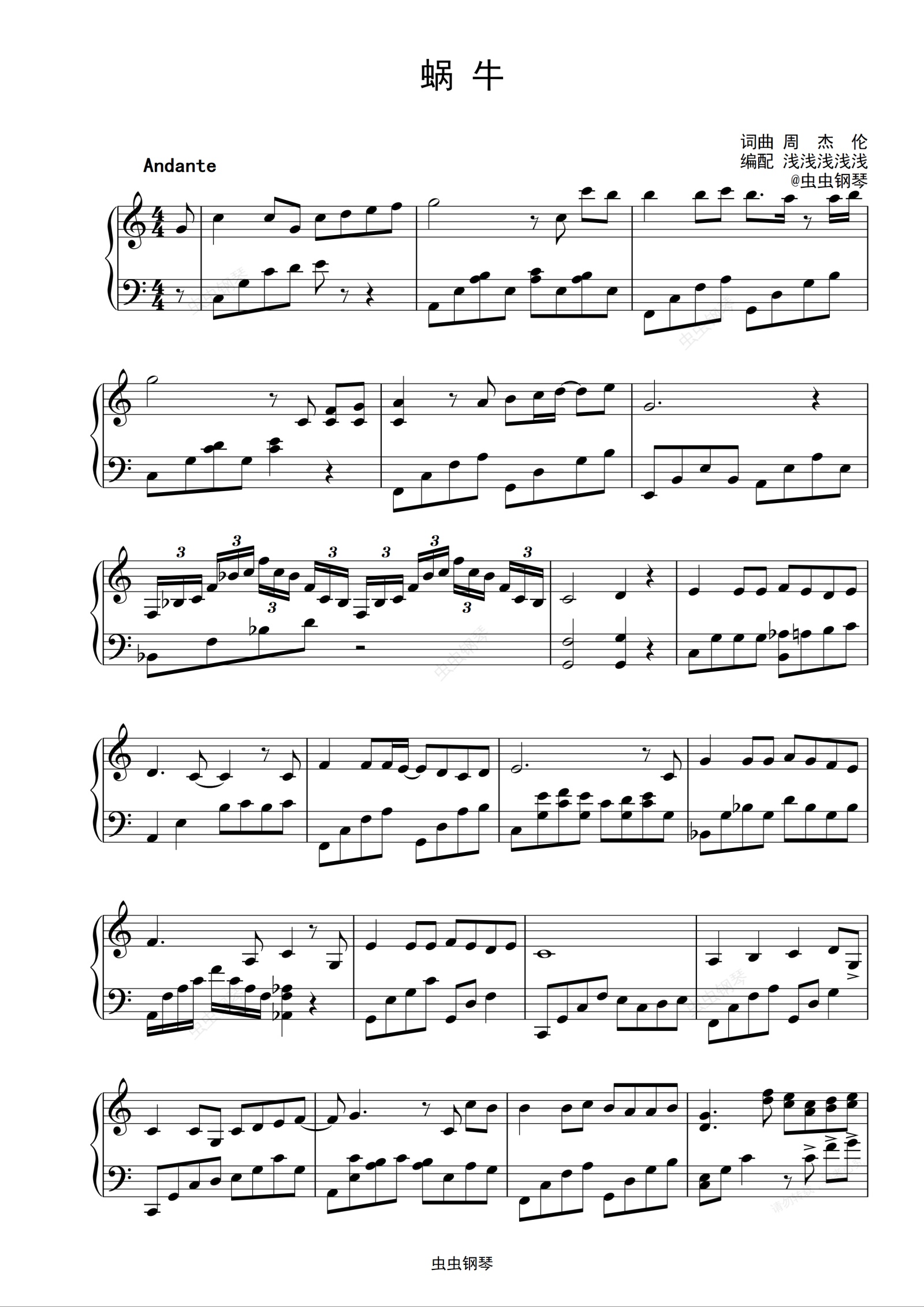 钢琴谱:蜗牛-杰伦汶川赈灾义演改编版