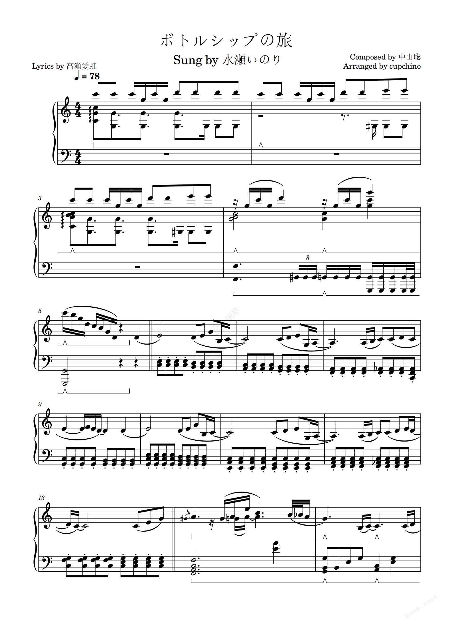 钢琴谱:【点兔】ボトルシップの旅(智乃叙事曲)