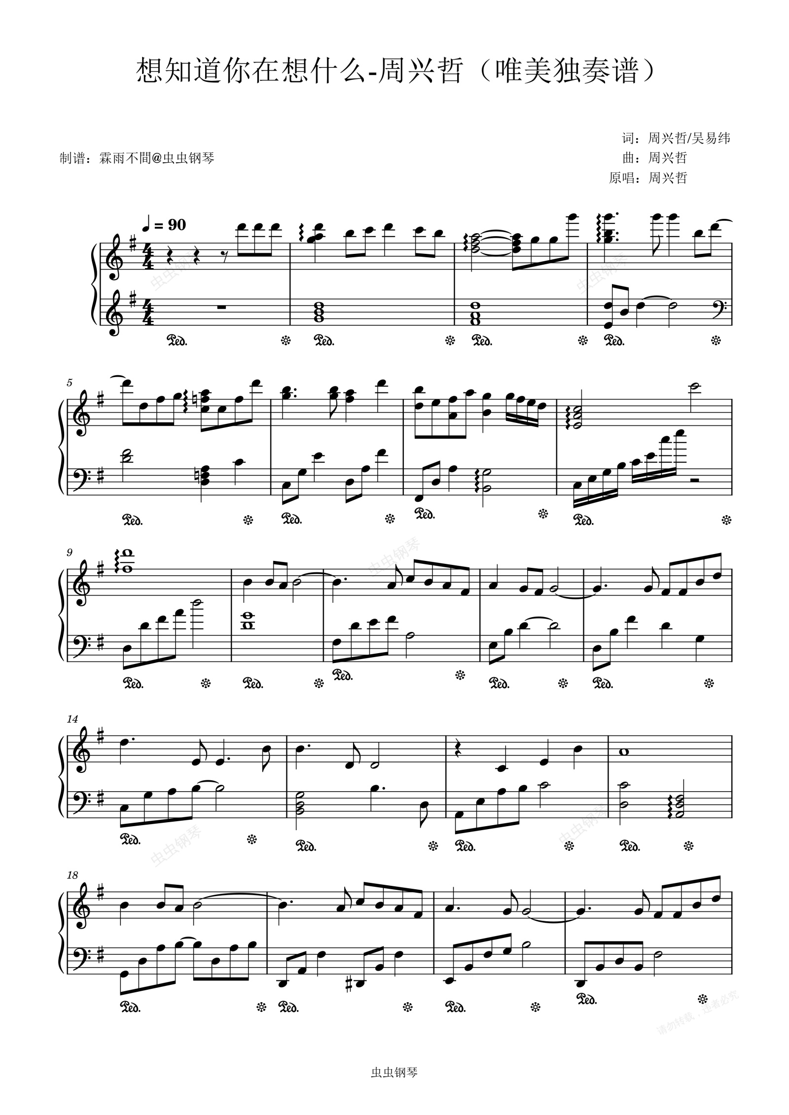 钢琴谱:想知道你在想什么-周兴哲(唯美独奏谱)