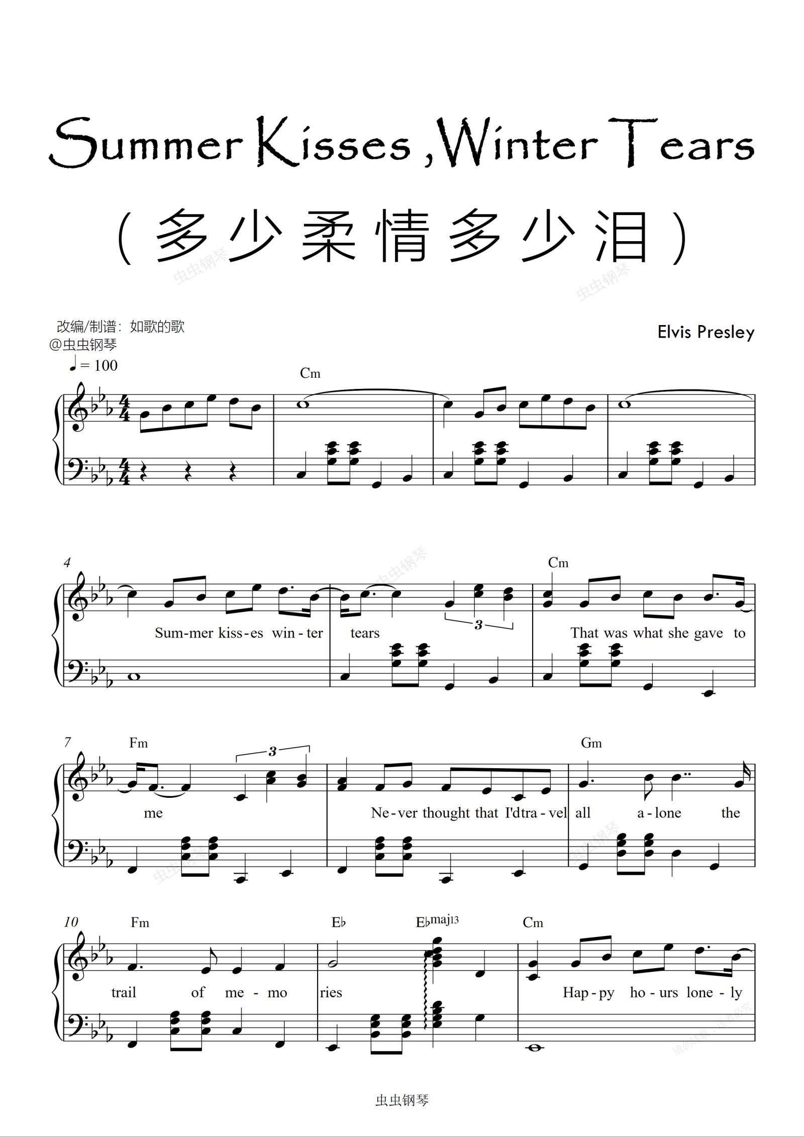 钢琴谱:Summer Kisses Winter Tears多少柔情多少泪