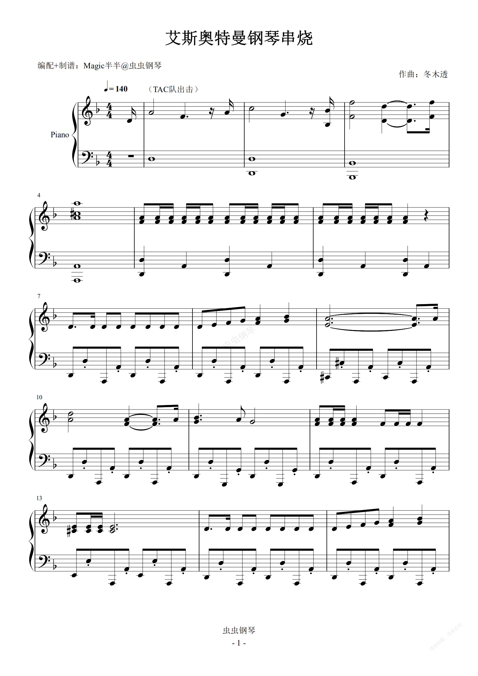 钢琴谱:<艾斯奥特曼>钢琴串烧