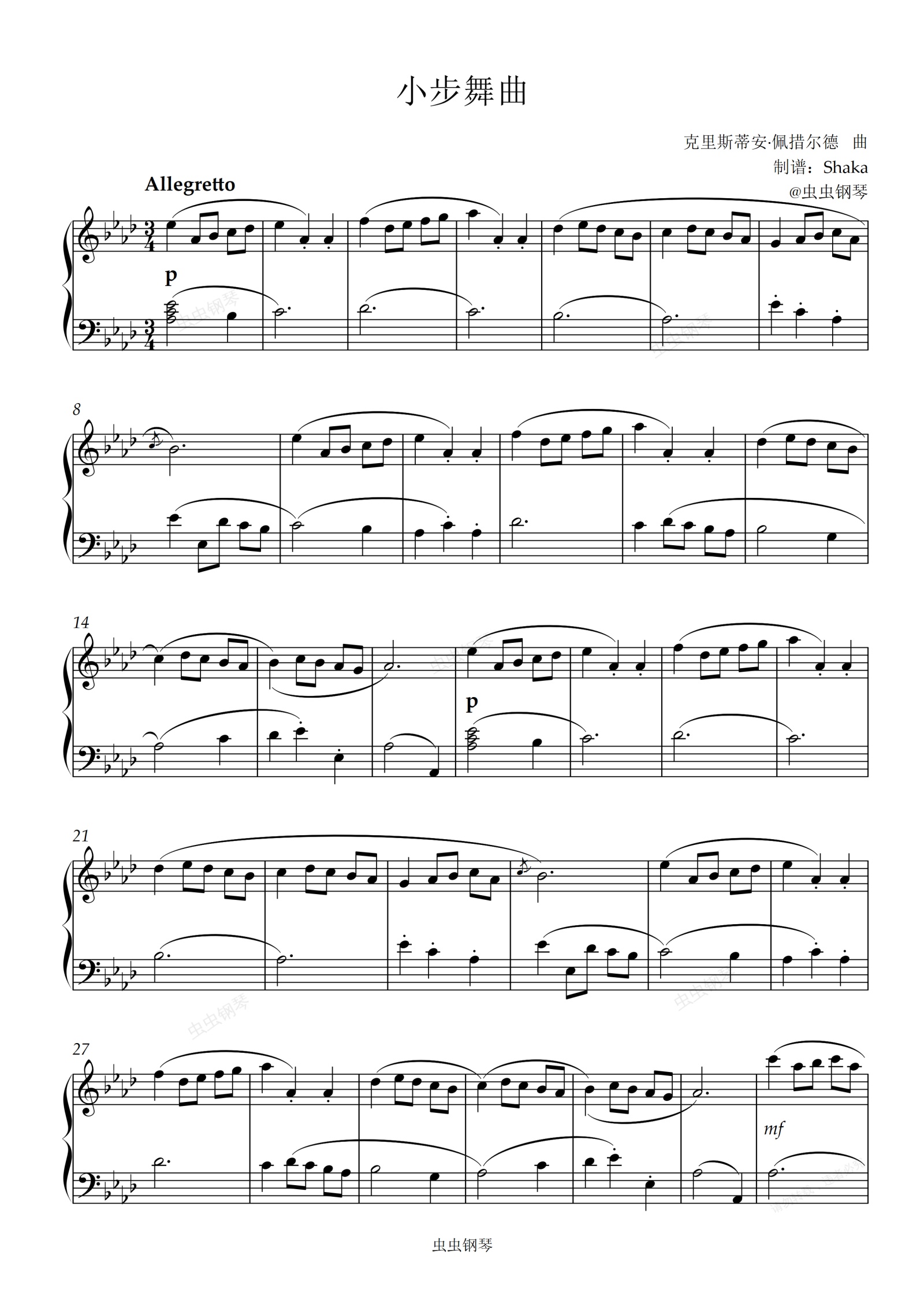 钢琴谱:小步舞曲 唯美降A调版 上海音乐学院2级考级曲目