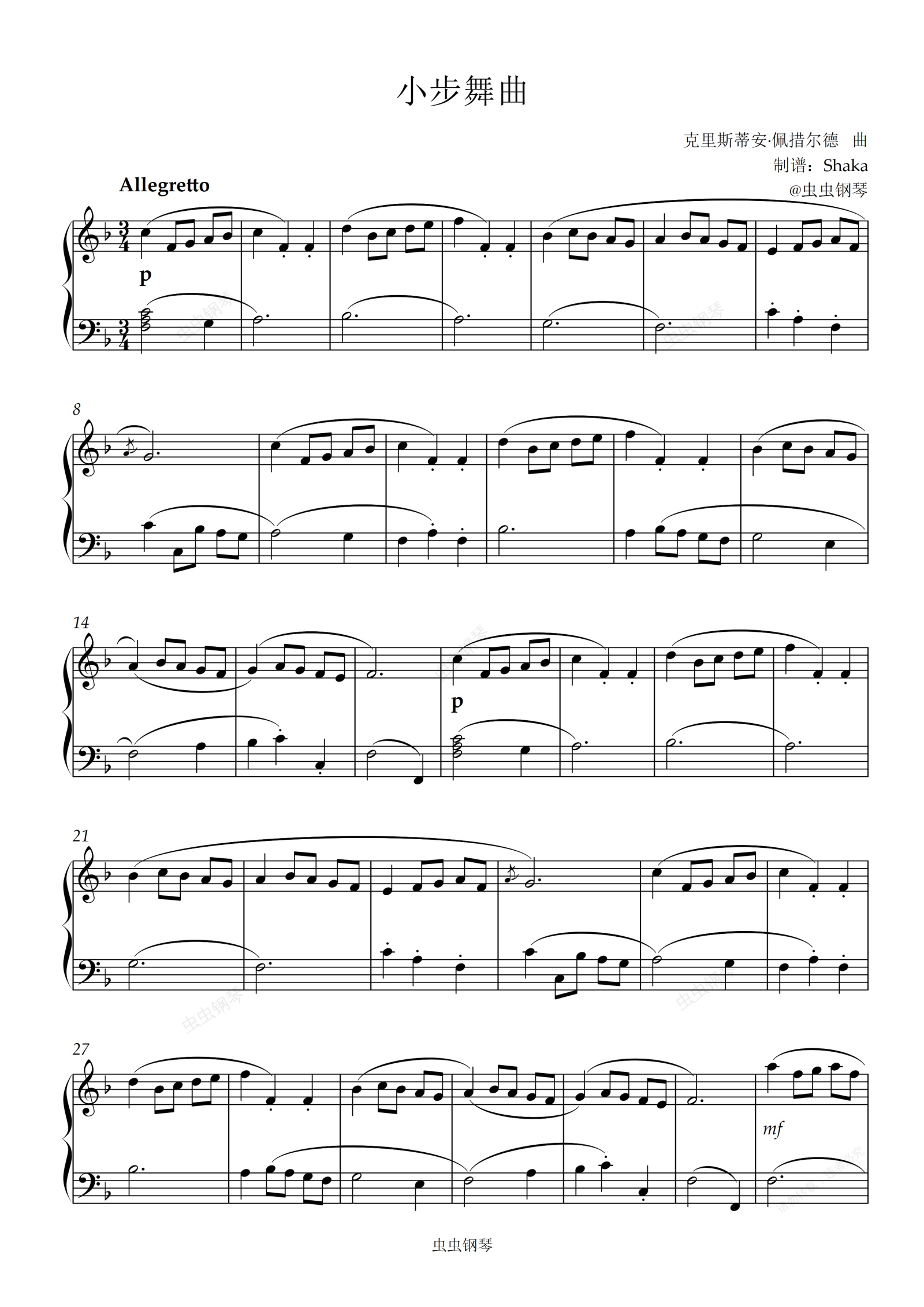 钢琴谱:小步舞曲 F调版 上海音乐学院2级考级曲目