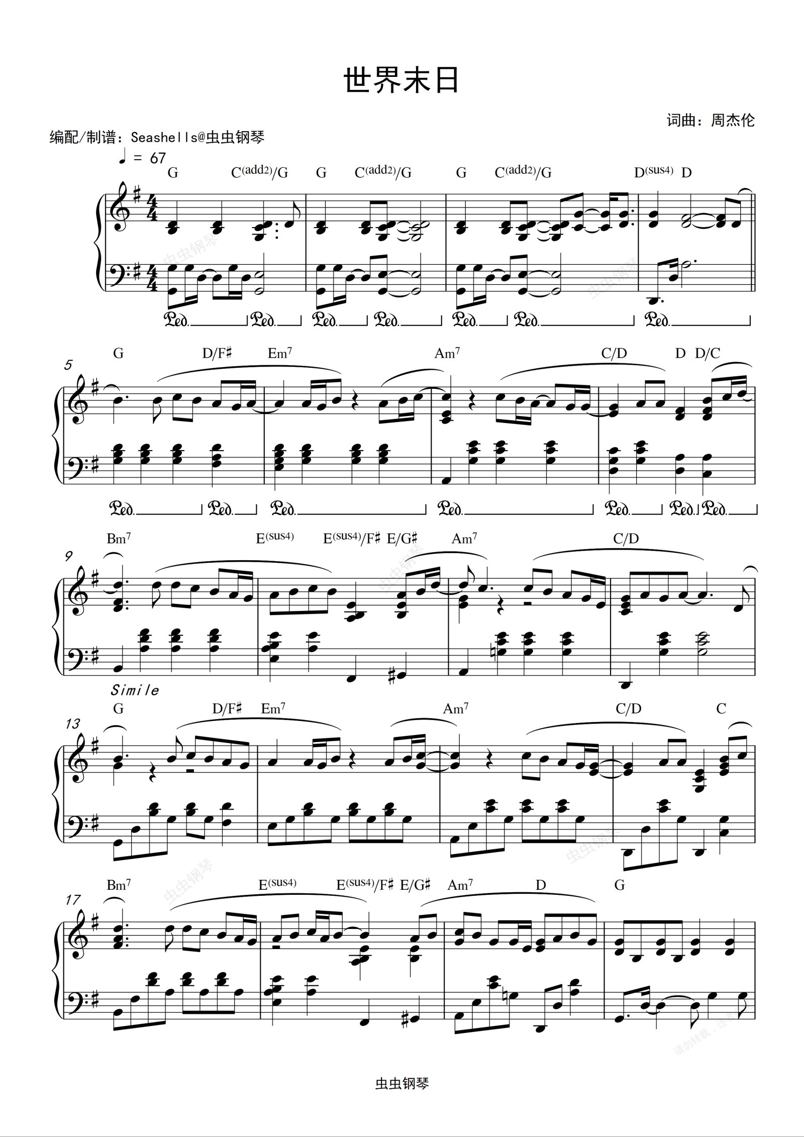 钢琴谱:周杰伦-《世界末日》精编钢琴独奏