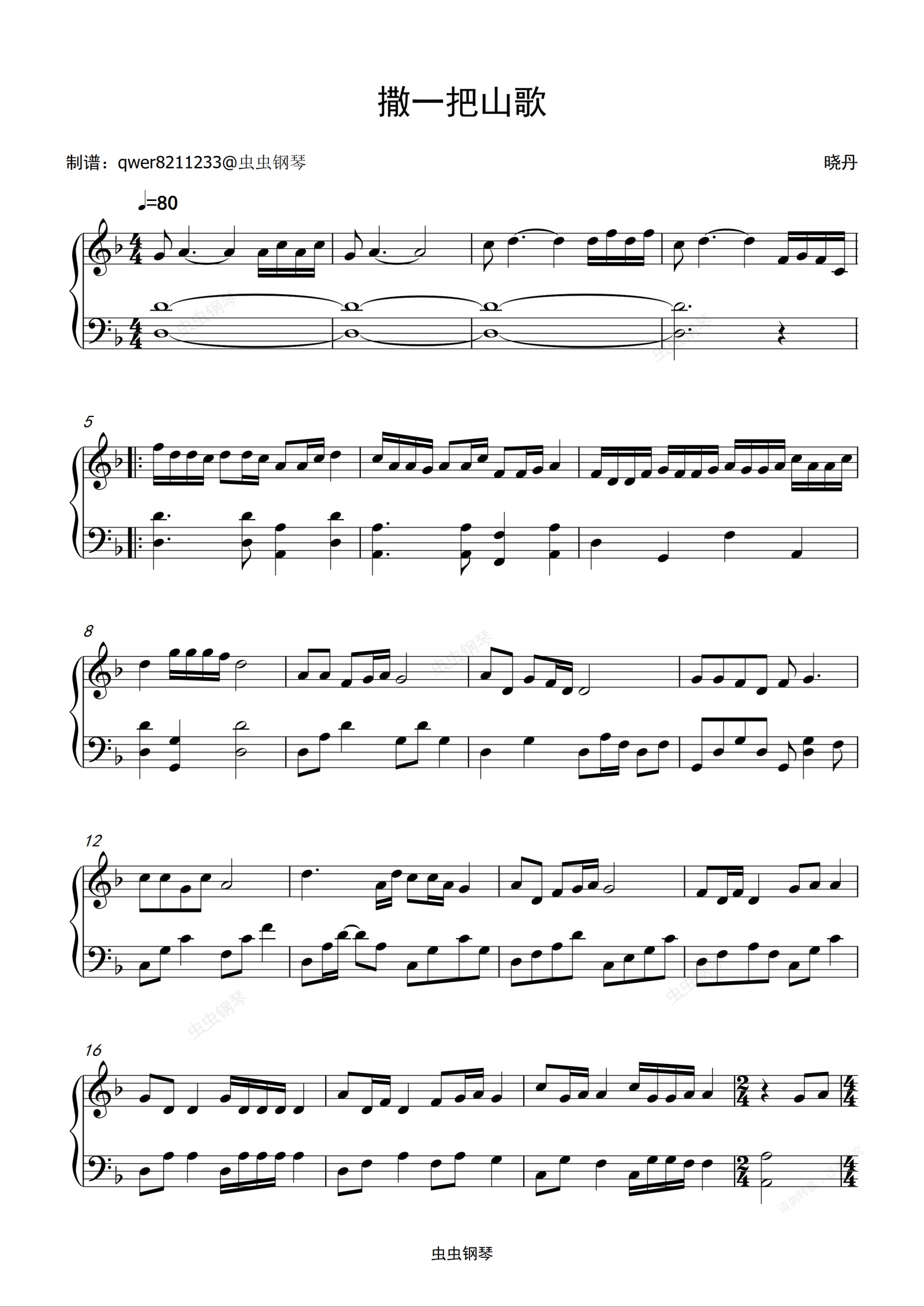 钢琴谱:撒一把山歌