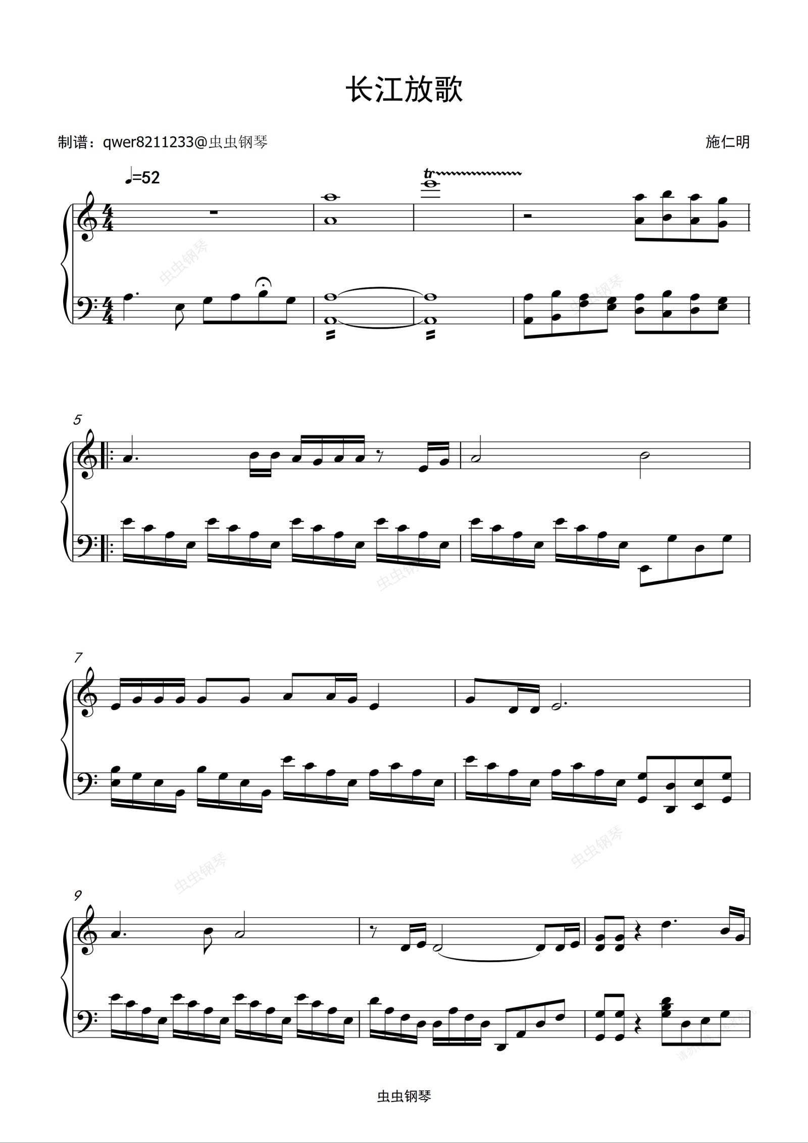 钢琴谱:长江放歌