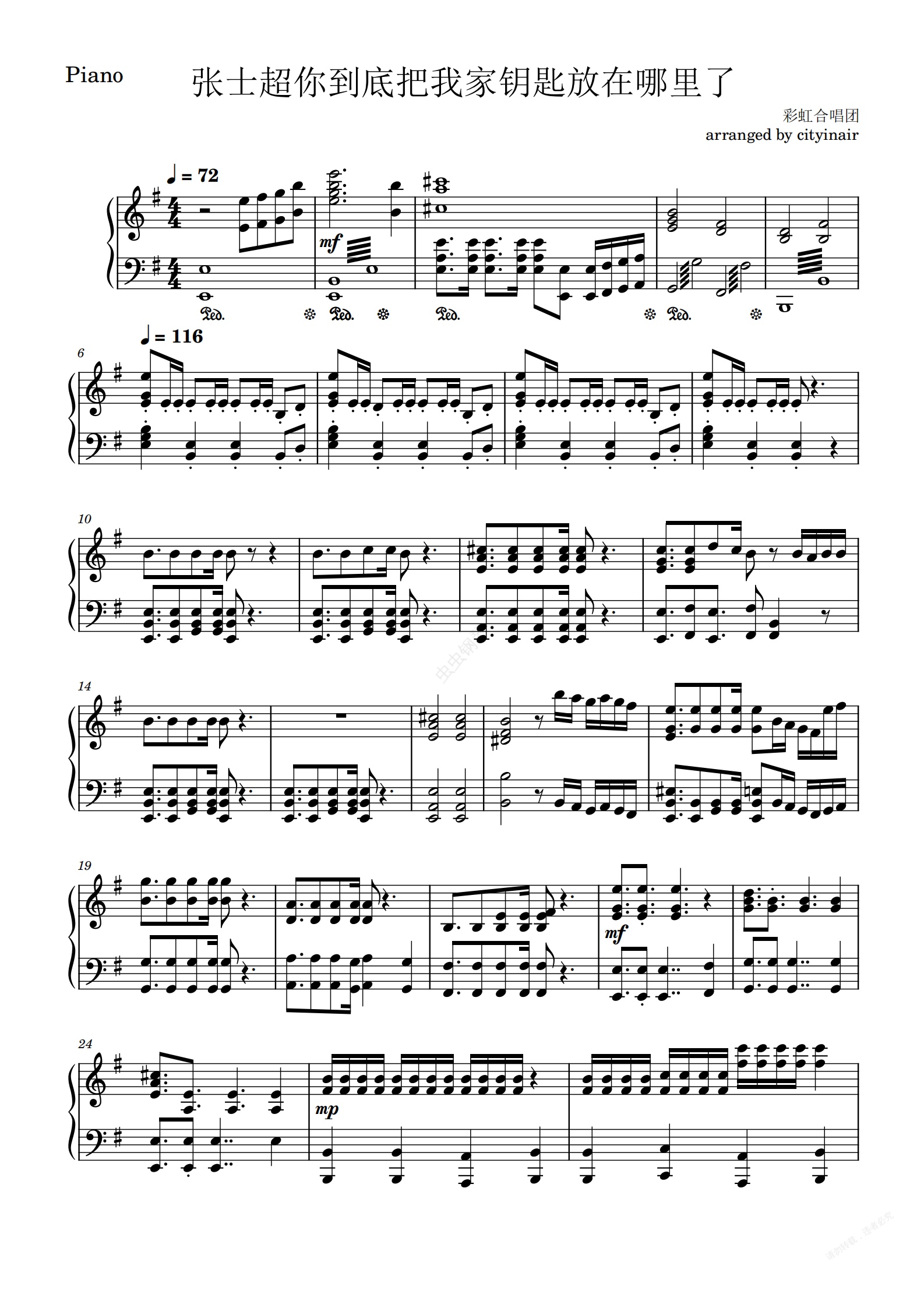 钢琴谱:张士超你到底把我家钥匙放在哪里了【钢琴伴奏谱及伴奏试听】