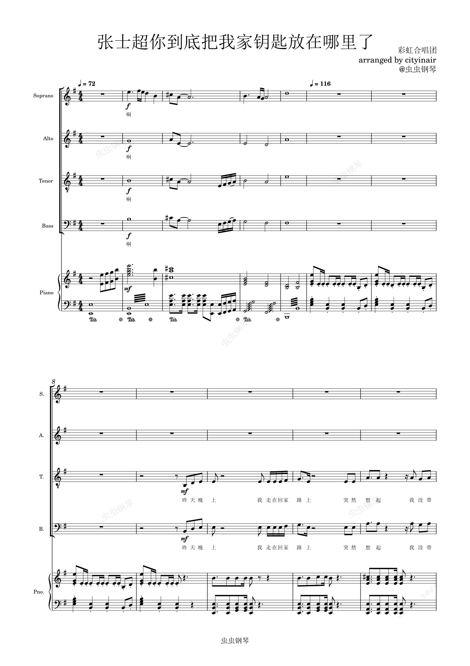 钢琴谱:张士超你到底把我家钥匙放在哪里了【合唱总谱】