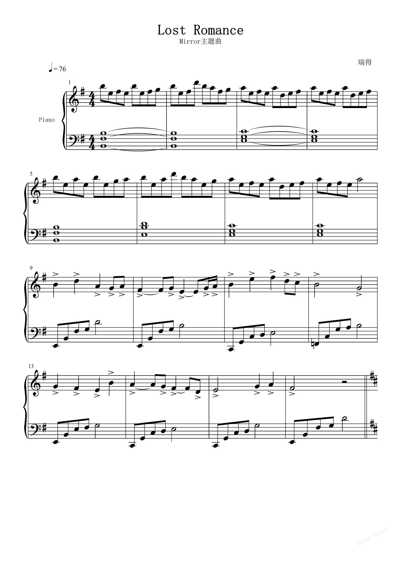 钢琴谱:Mirror 背景音乐 Lost Romance