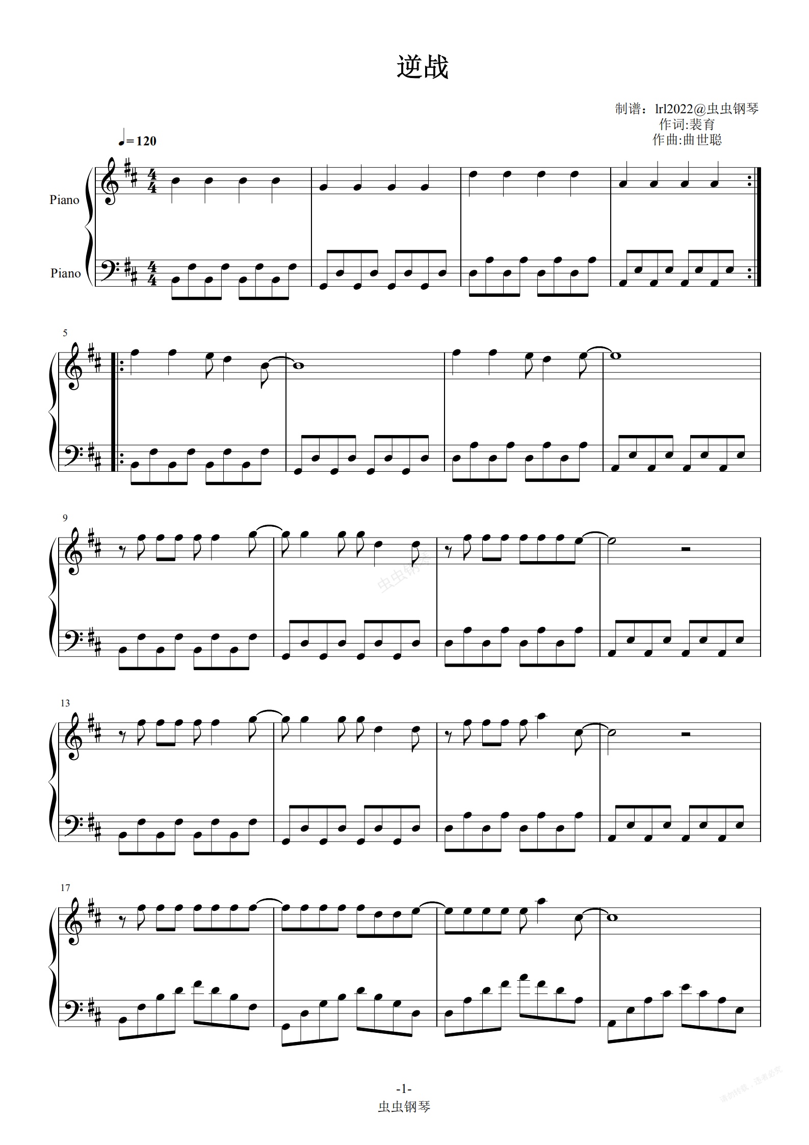 钢琴谱:逆战-简单版-五线谱-独奏版-钢琴谱