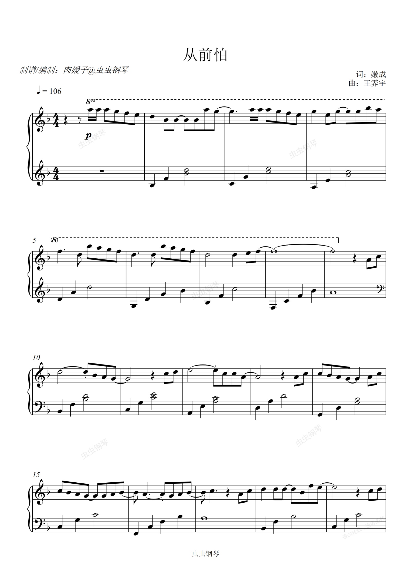 钢琴谱:从前怕 - 于冬然【好听简单版】