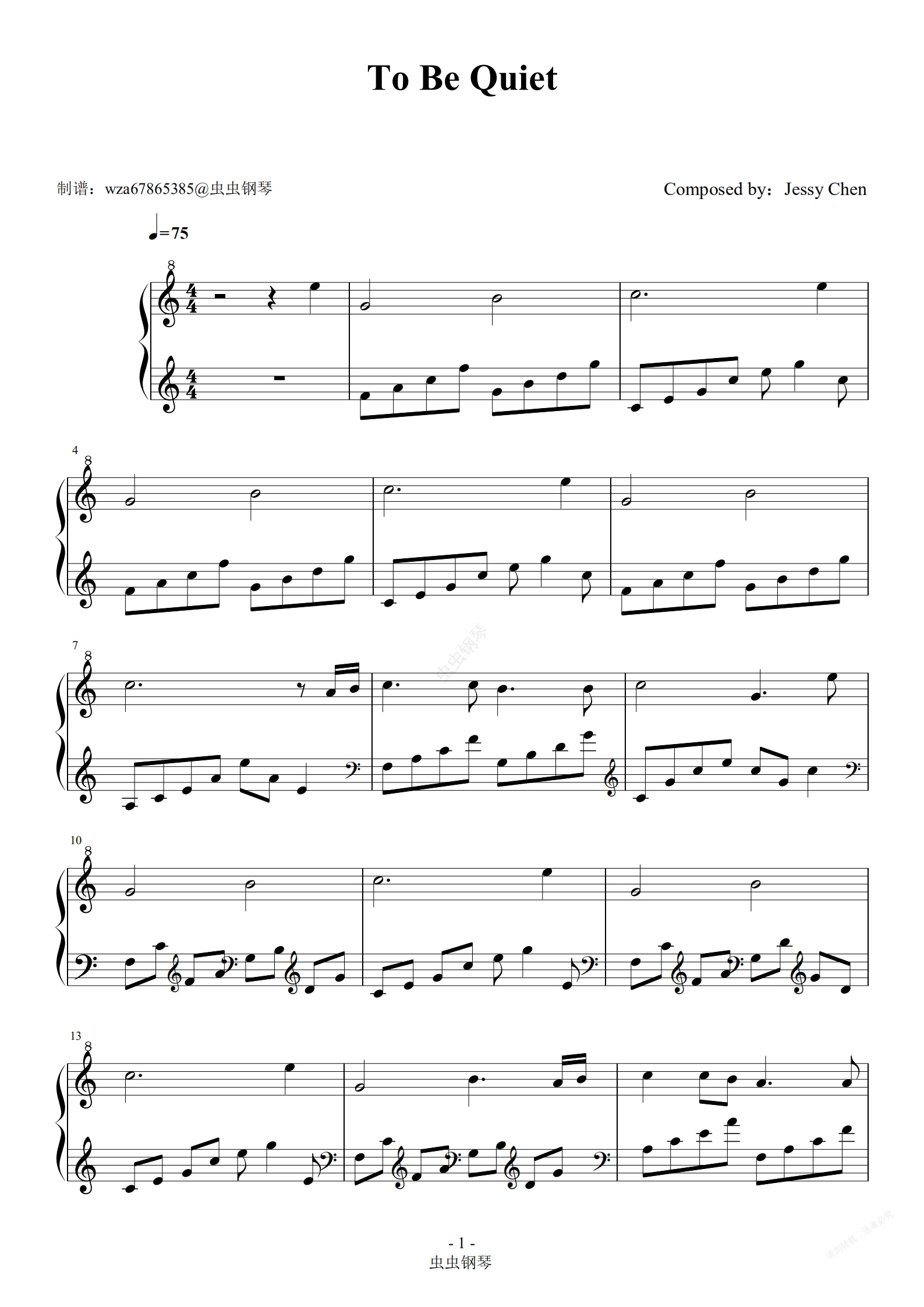 钢琴谱:To Be Quiet