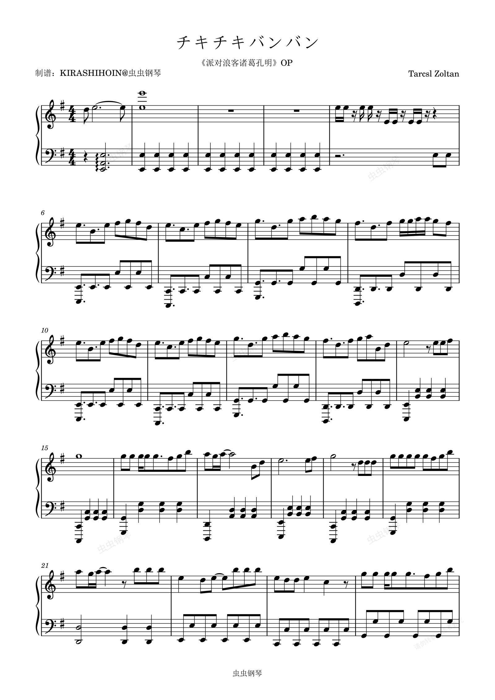 钢琴谱:チキチキバンバン(《派对浪客诸葛孔明》OP/主题曲)