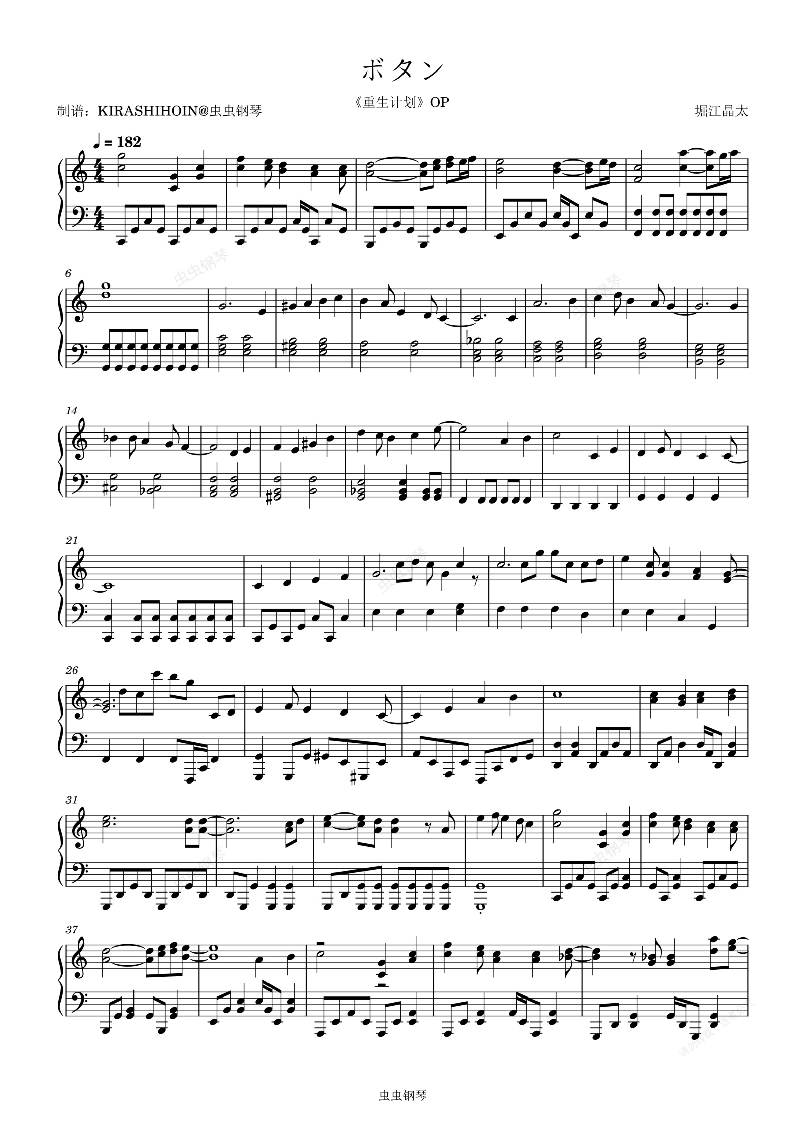 钢琴谱:ボタン(《重生计划》OP/片头曲)- PENGUIN RESEARCH