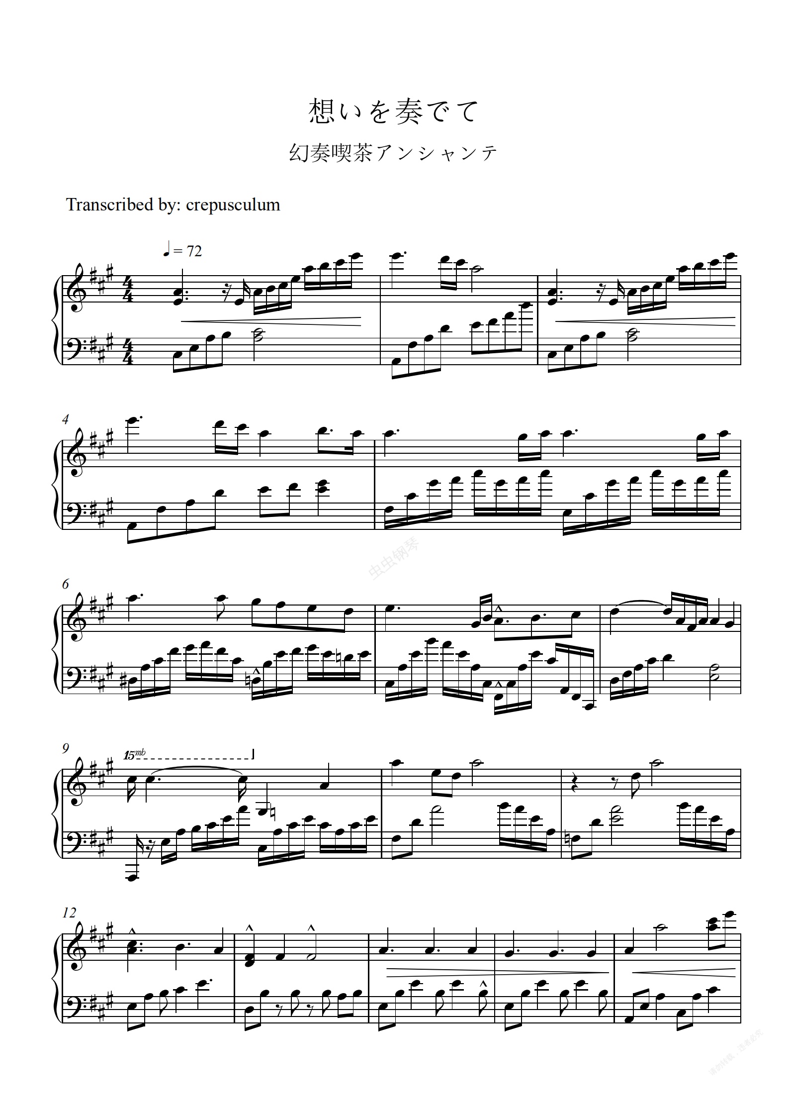 钢琴谱:【钢琴谱】想いを奏でて 「幻奏喫茶アンシャンテ/幻奏咖啡厅Enchanté」BGM