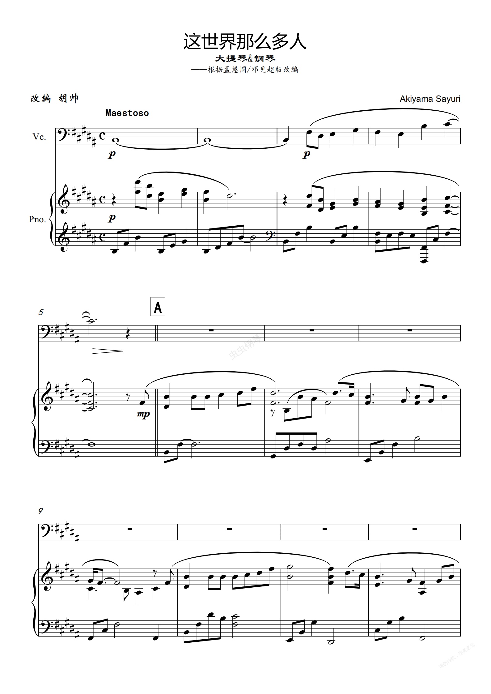 钢琴谱:这世界那么多人【大提琴&钢琴】