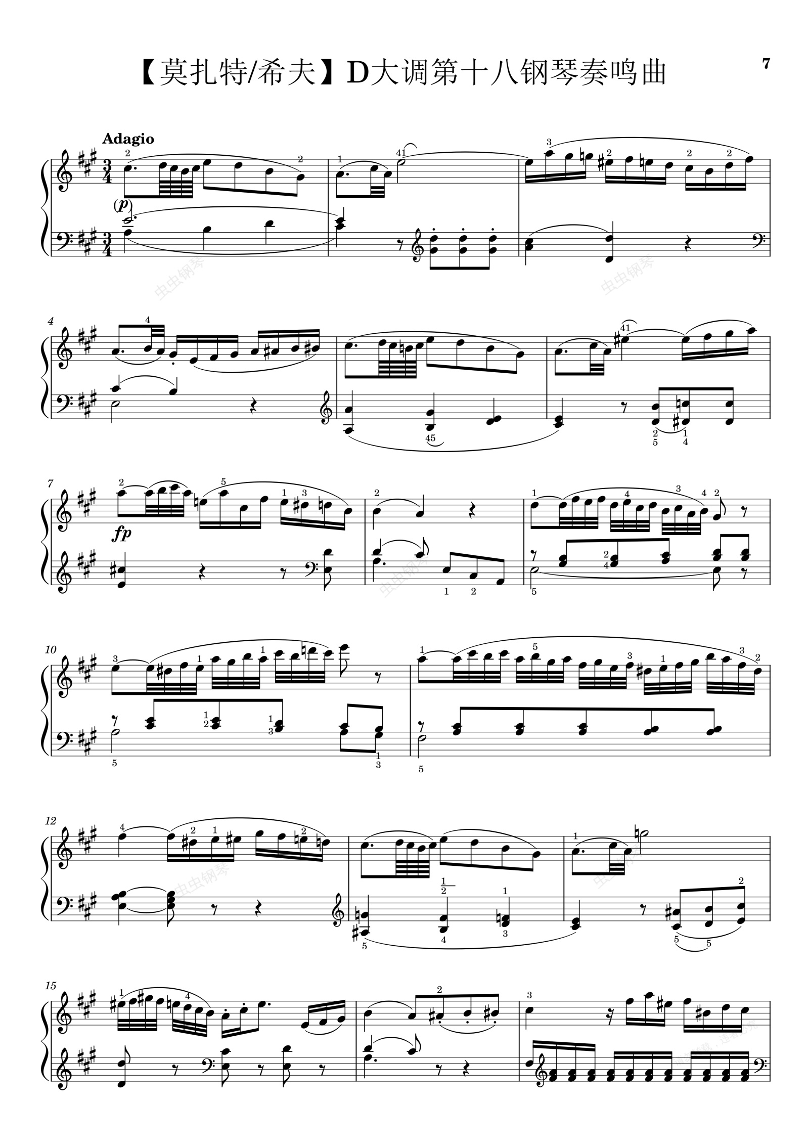 钢琴谱:莫扎特D大调第十八钢琴奏鸣曲Sonata No. 18, “The Hunt” 2nd Movement K. 576