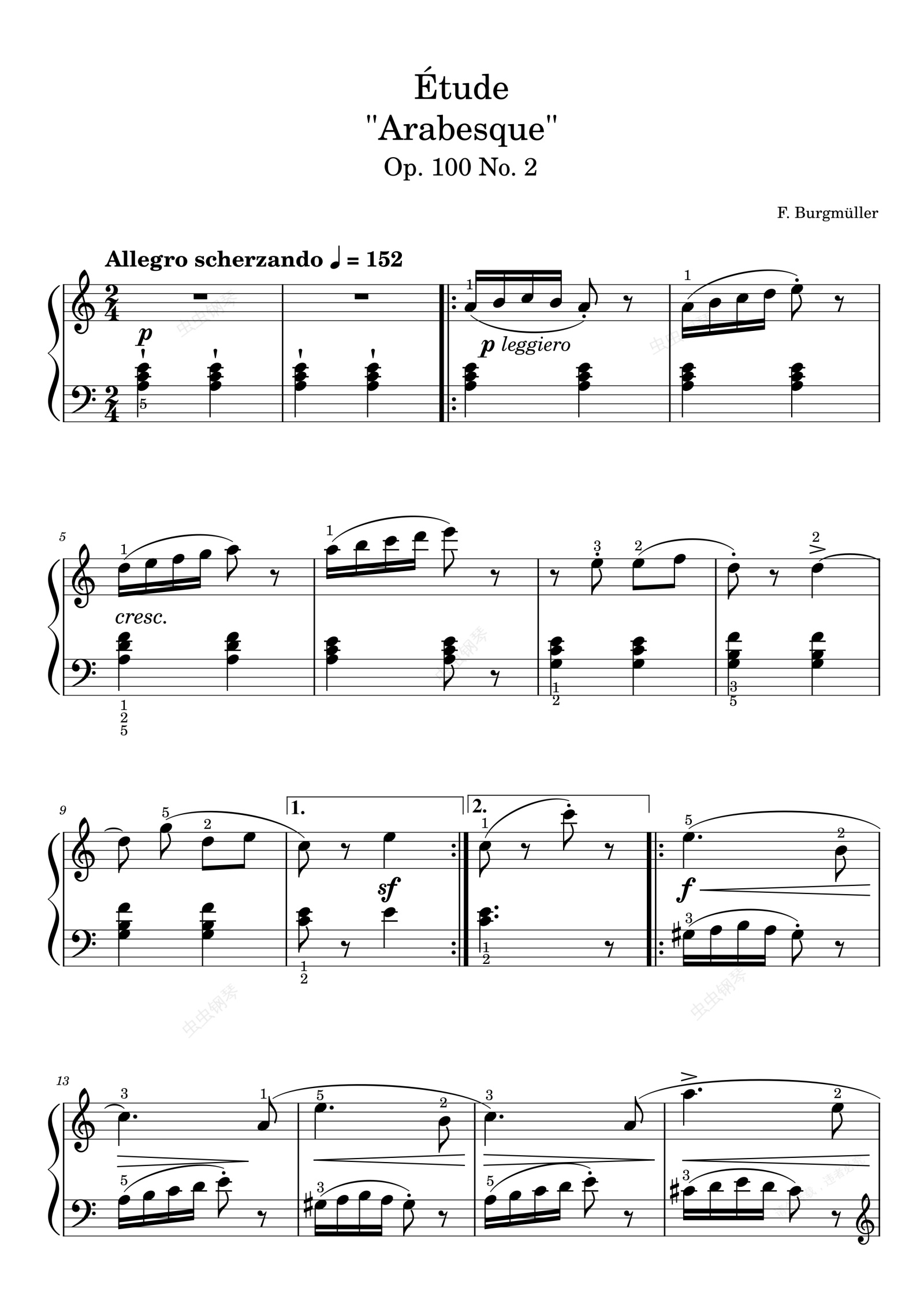 钢琴谱:Étude Op. 100 No. 2 Arabesque