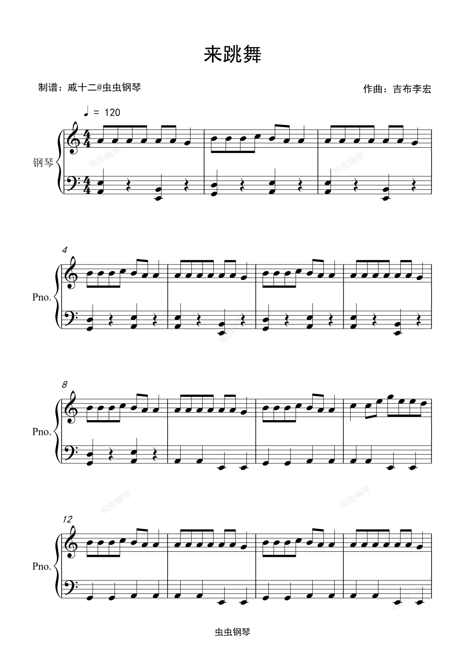 钢琴谱:来跳舞 -C调简单版  骑上我的小骆驼带你去看日不落